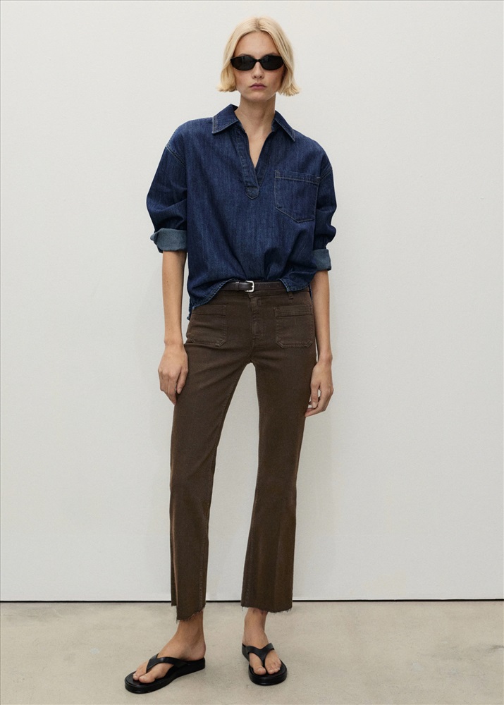 DescripciónTejido de algodón estilo tejano vaquero. Diseño crop. Estilo flare. Ankle brace. Tiro medio. Trabillas. Dos bolsillos de parche frontales. Cierre delantero de cremallera y botón. Комментарии к товару