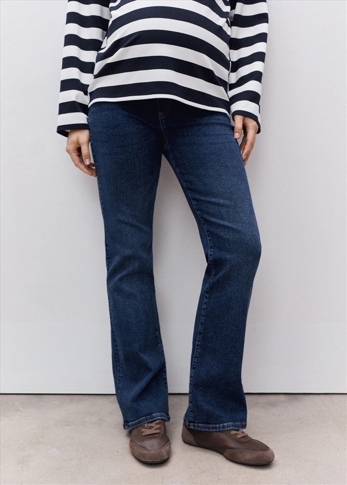 Goma elástica. Diseño acampanado. Diseño campana. Diseño largo. Tejido de algodón estilo tejano vaquero. Estilo flare. Tiro bajo. Dos bolsillos de parche en la parte posterior. Banda de punto elástica en la cintura para mayor comodidad y sujeción. Sin cinturilla. Sin cierre. Largo interior 82 cm. Te recomendamos comprar tu talla habitual. Proporciona comodidad y libertad de movimiento. Premamá. Cintura con goma elástica.