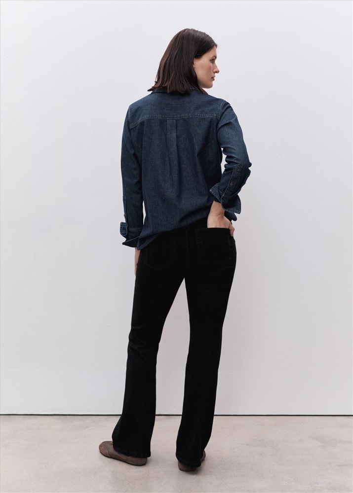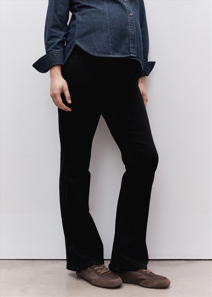 Tejido de algodón estilo tejano vaquero. Diseño acampanado. Diseño campana. Estilo flare. Tiro bajo. Dos bolsillos de parche en la parte posterior. Banda de punto elástica en la cintura para mayor comodidad y sujeción. Sin cinturilla. Sin cierre. Largo interior 82 cm. Te recomendamos comprar tu talla habitual. Proporciona comodidad y libertad de movimiento. Premamá. Cintura con goma elástica.