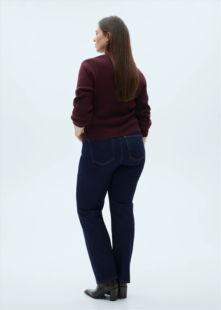 Tejido mezcla de algodón reciclado. Tejido de algodón estilo tejano vaquero. Rinse wash. Diseño recto. Diseño largo. Diseño estándar. Tiro medio. Cinco bolsillos. Cierre delantero de cremallera y botón. Trabillas. Dos bolsillos laterales. Dos bolsillos de parche en la parte posterior. Cierre de cremallera y botón. Largo interior 78 cm. Full length. Disponible Plus.