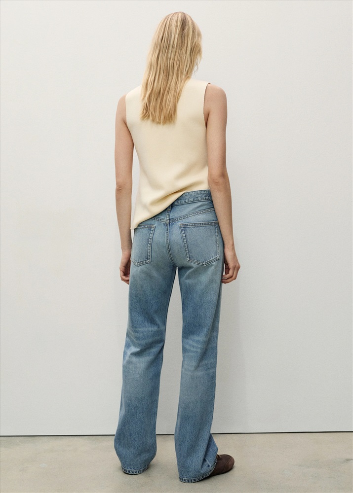 Tejido de algodón estilo tejano vaquero. Diseño largo. Diseño recto. Tiro medio. Trabillas. Cinco bolsillos. Cierre delantero de cremallera y botón. Disponible Plus. Largo interior 82 cm.