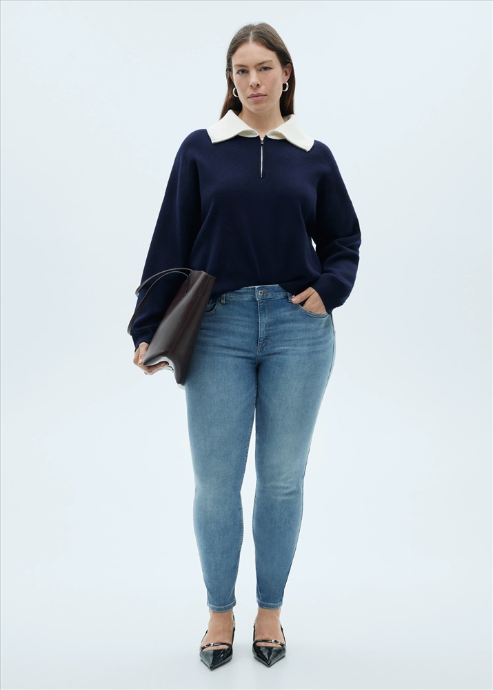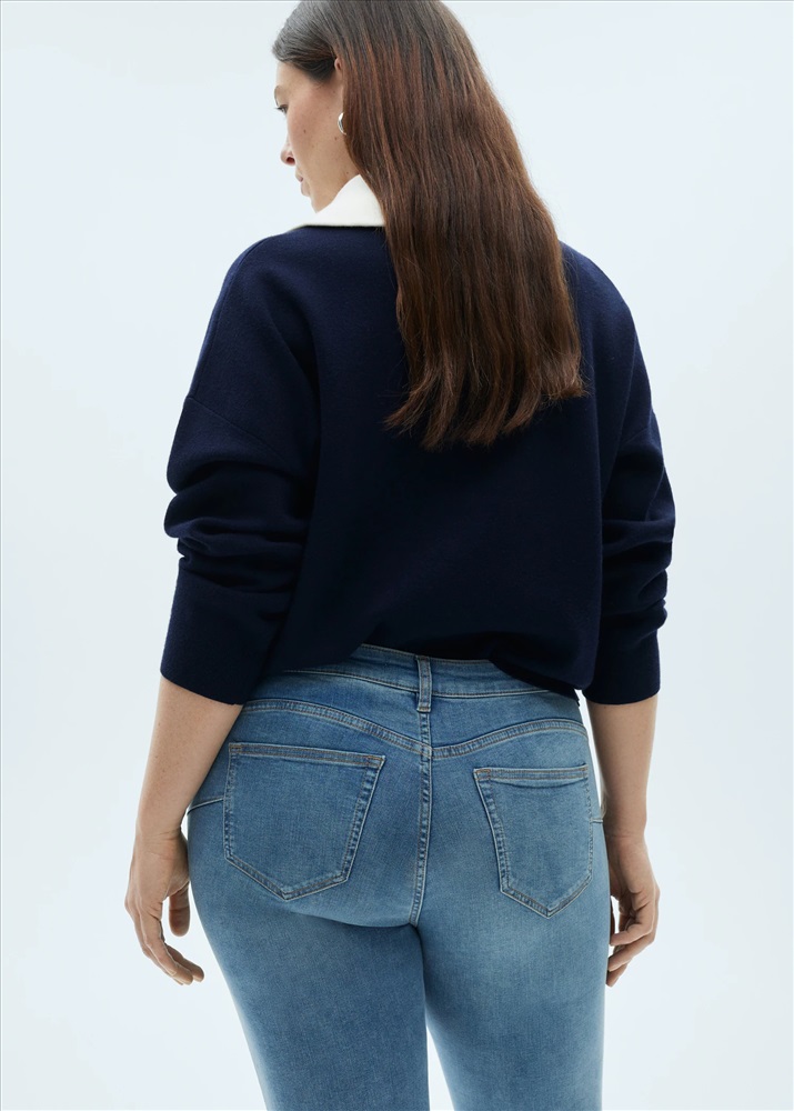 Tejido de algodón estilo tejano vaquero. Diseño push-up. Corte skinny. Diseño largo. Tiro bajo. Trabillas. Cinco bolsillos. Cierre delantero de cremallera y botón. Disponible Plus. Tejido elástico. Cierre de cremallera y botón. Full length. Largo interior 74 cm.