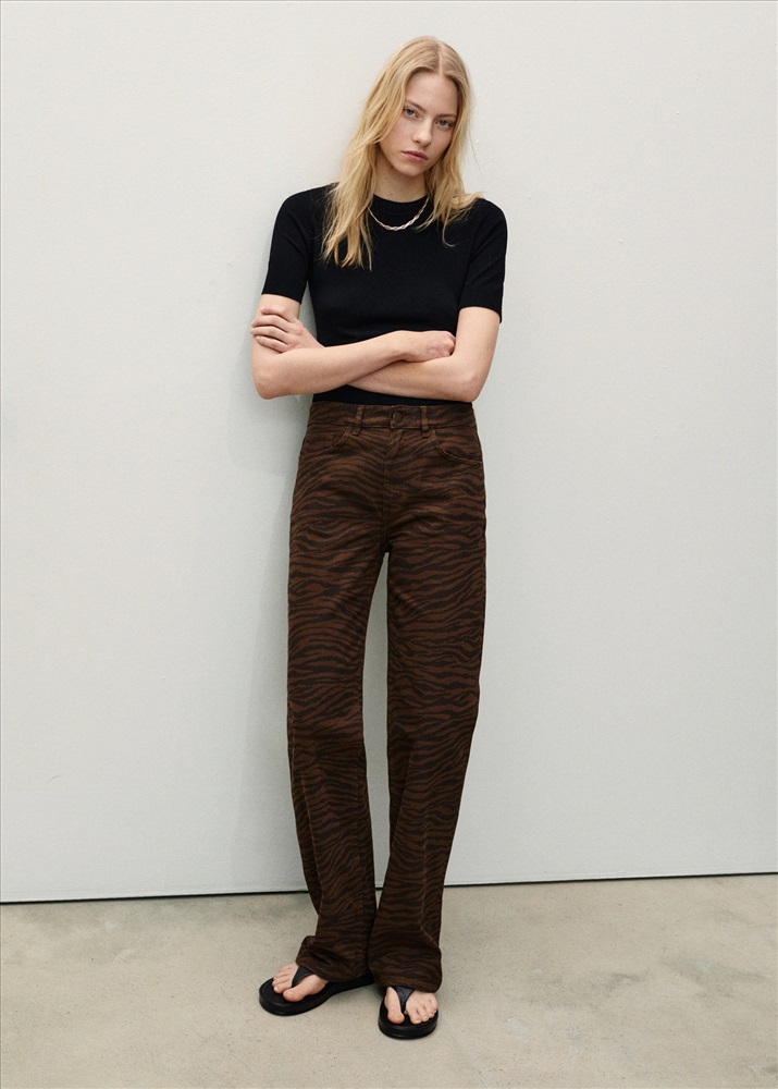 Descripción100% Algodón. Tejido de denim. Diseño recto. Diseño estándar. Diseño largo. Estampado animal print. Estampado de cebra. Tiro alto. Cinco bolsillos. Cierre delantero de cremallera y botón. Trabillas. Комментарии к товару