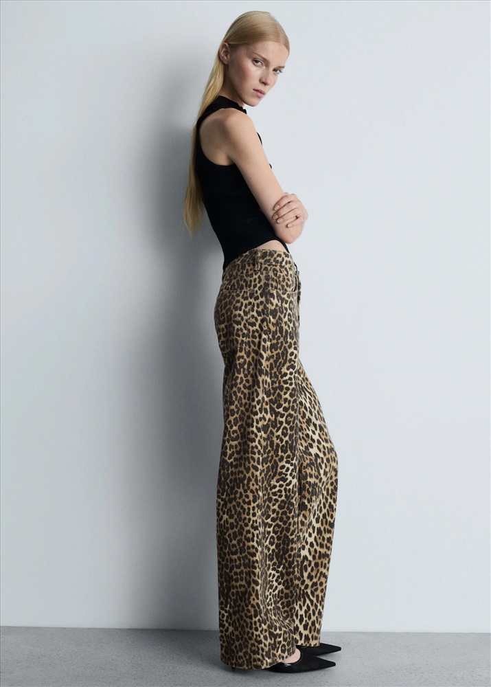 Jeans rectos tiro alto leopardo