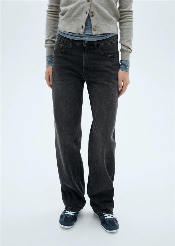 Tejido de algodón estilo tejano vaquero. Diseño largo. Diseño recto. Diseño loose. Tiro medio. Trabillas. Dos bolsillos delanteros. Bolsillo portamonedas. Dos bolsillos de parche en la parte posterior. Cierre de cremallera y botón. Largo interior 82 cm.