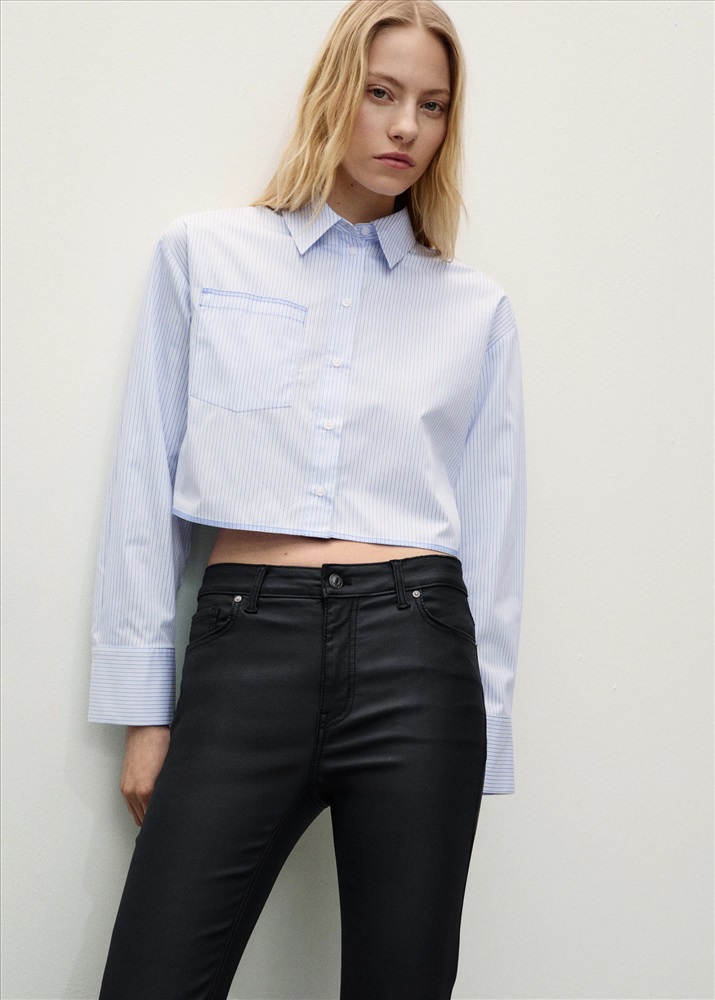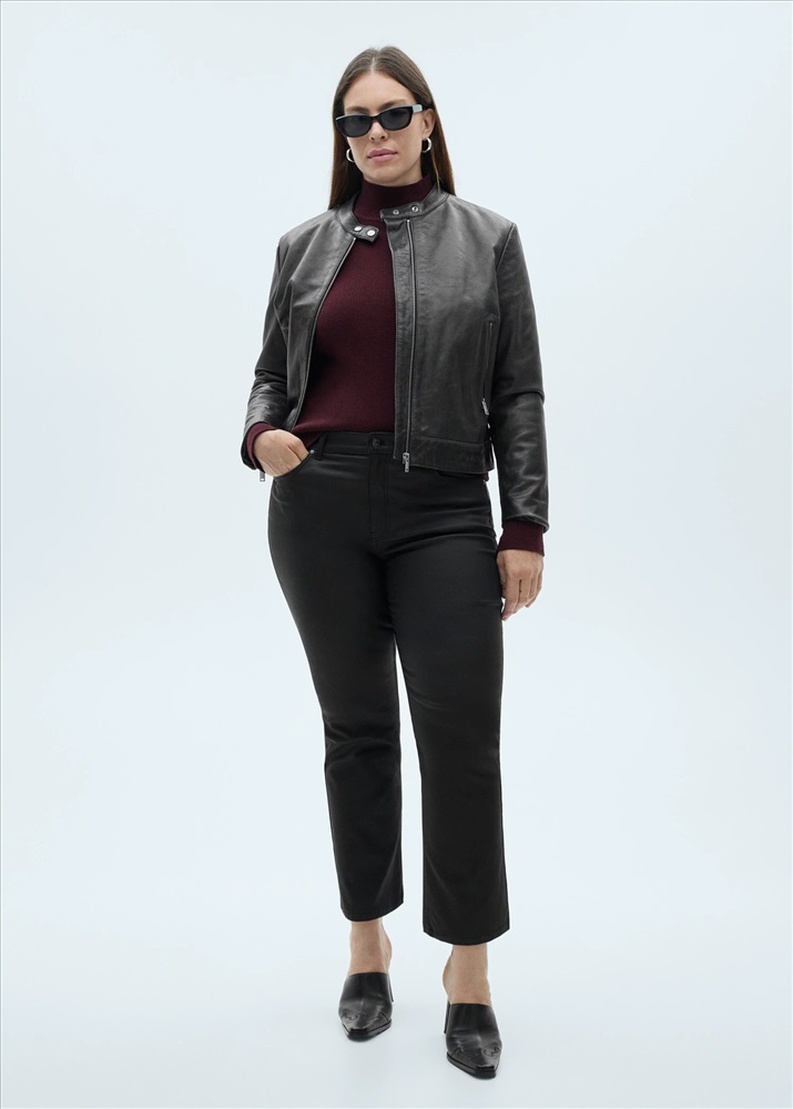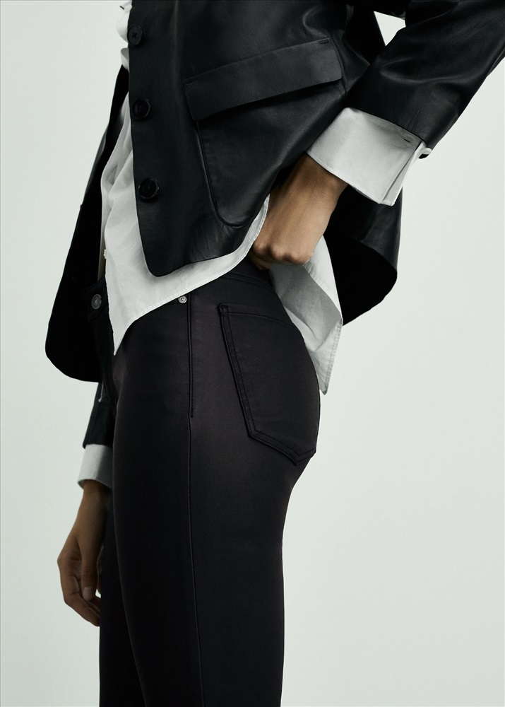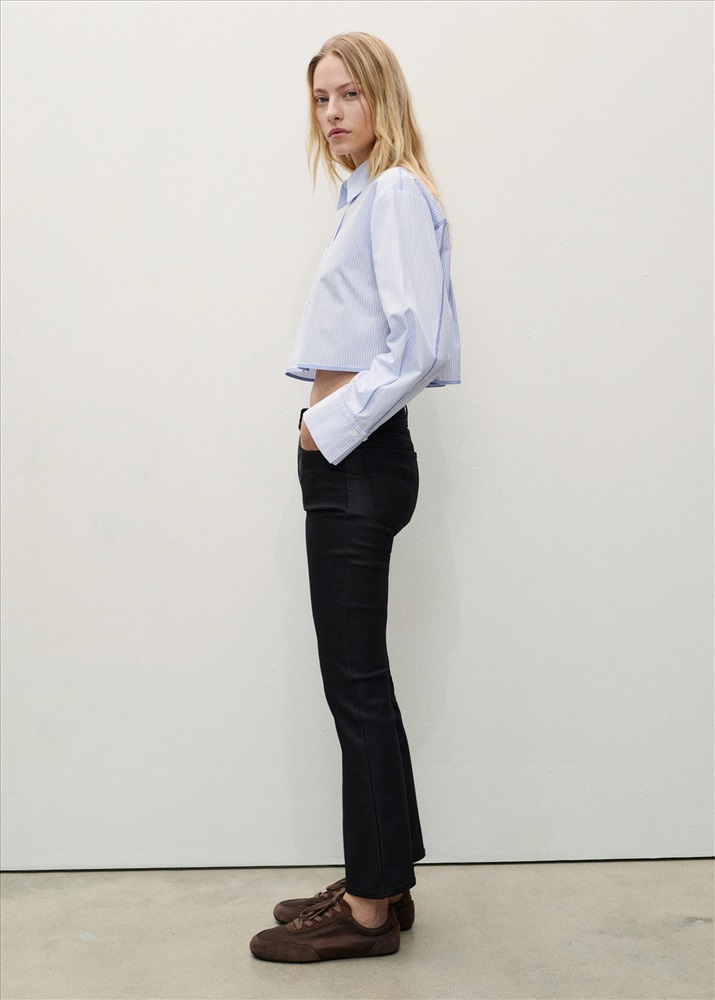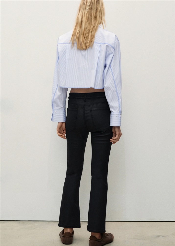 Efecto encerado. Diseño crop. Diseño bootcut. Tiro medio. Trabillas. Cinco bolsillos. Cierre de cremallera y botón. Disponible Plus. Largo interior 65 cm.