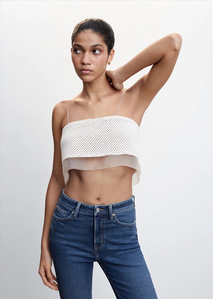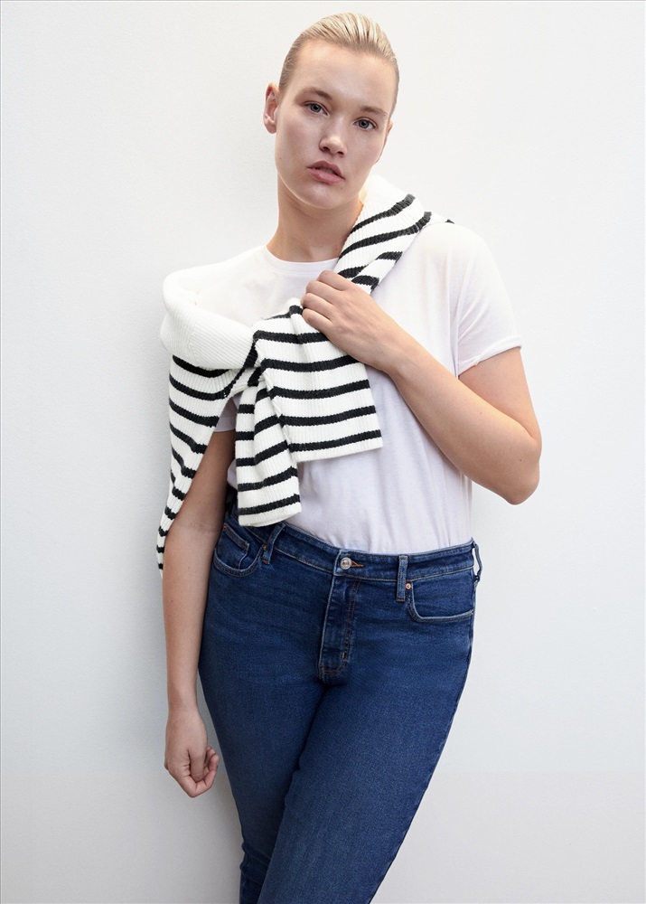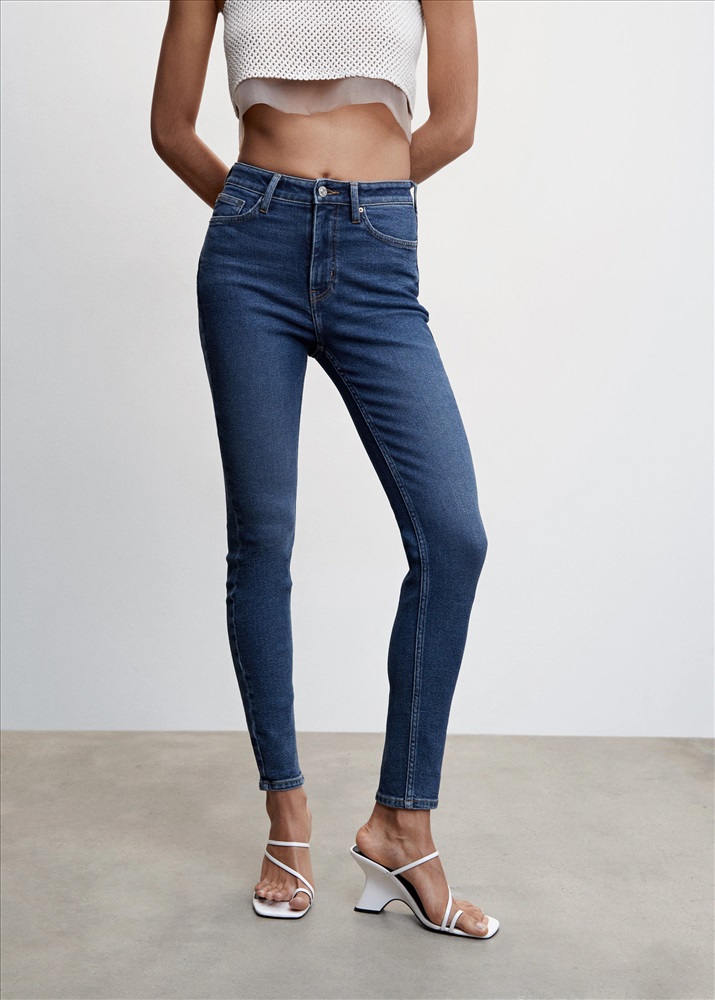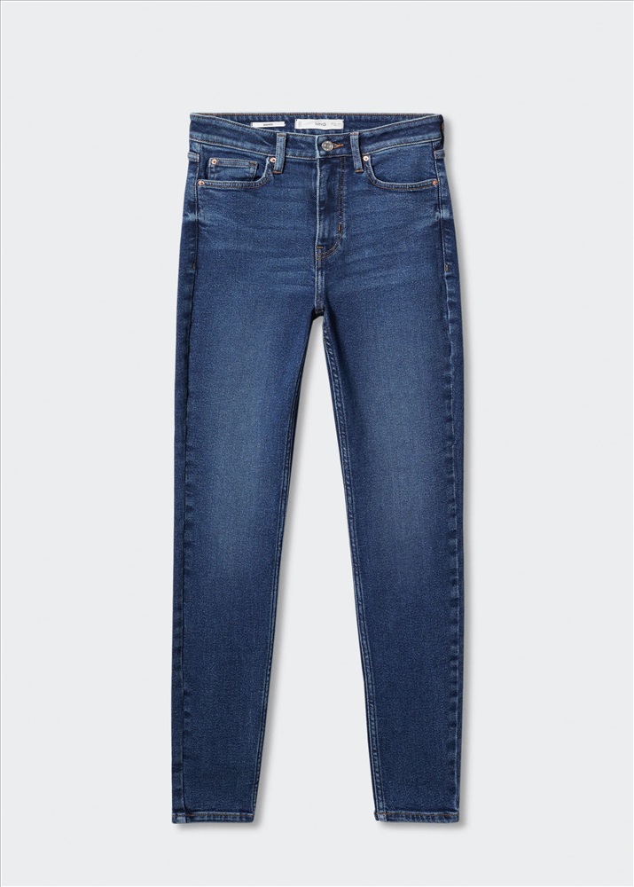 Tejido de algodón estilo tejano vaquero. Tejido elástico. Corte skinny. Tiro alto. Cinco bolsillos. Trabillas. Cierre de cremallera y botón. Largo interior 76 cm. Disponible Plus. Largo interior 75 cm.