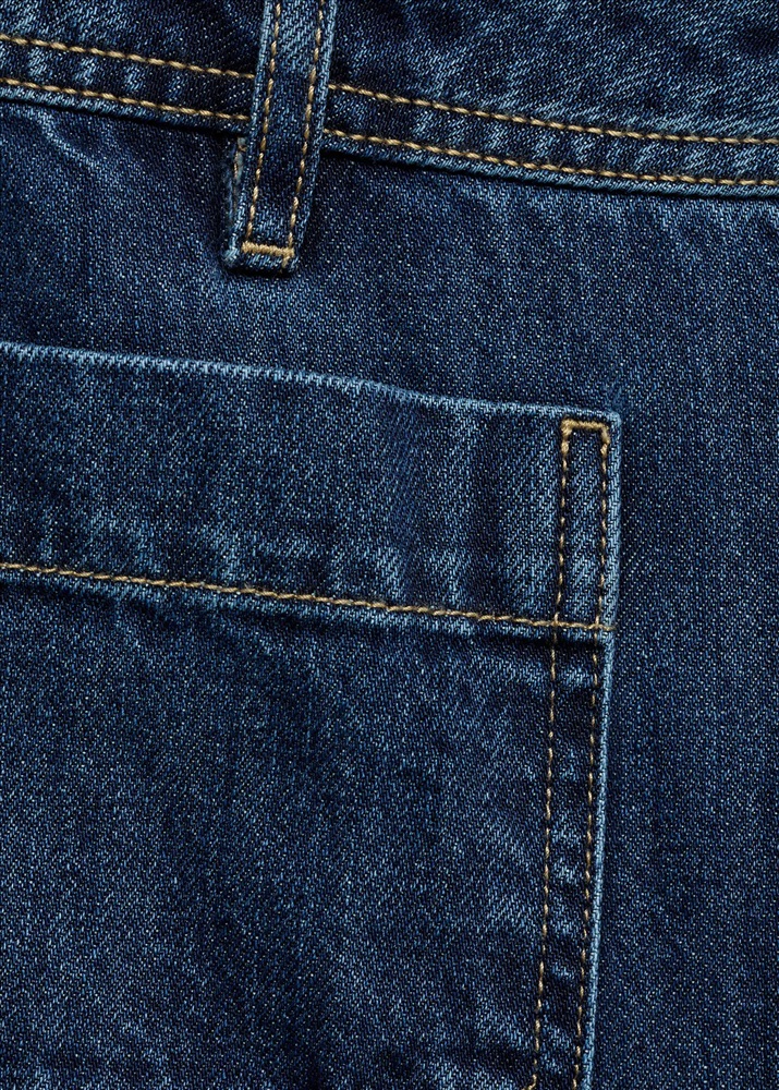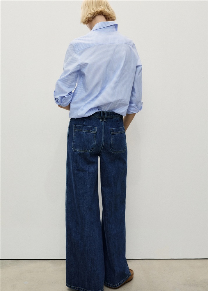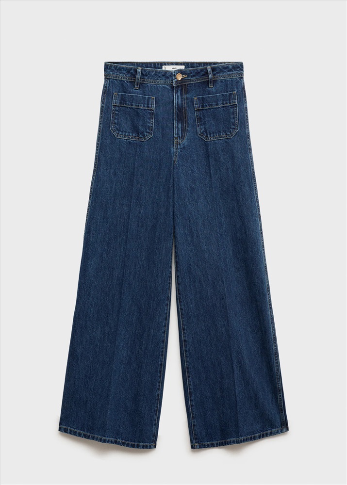 Tejido de algodón estilo tejano vaquero. Diseño wideleg. Diseño largo. Caña ancha. Tiro alto. Trabillas. Bolsillos de parche. Cierre de cremallera y botón. Largo interior 85 cm.