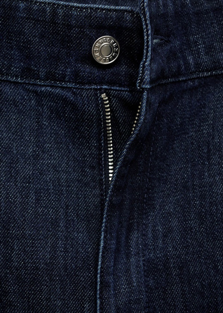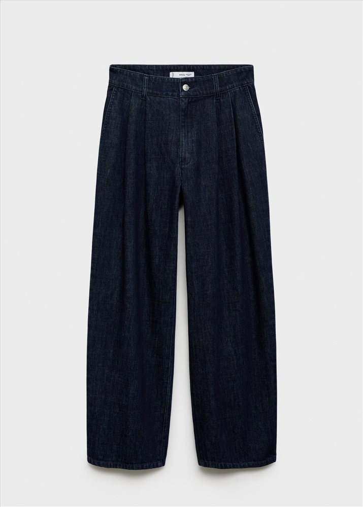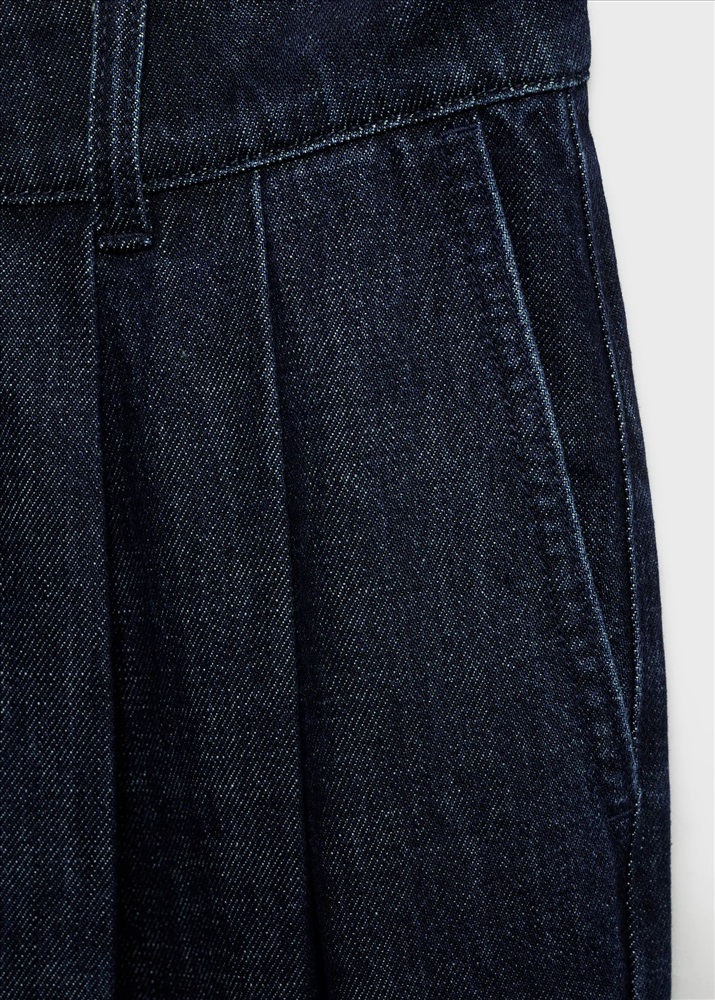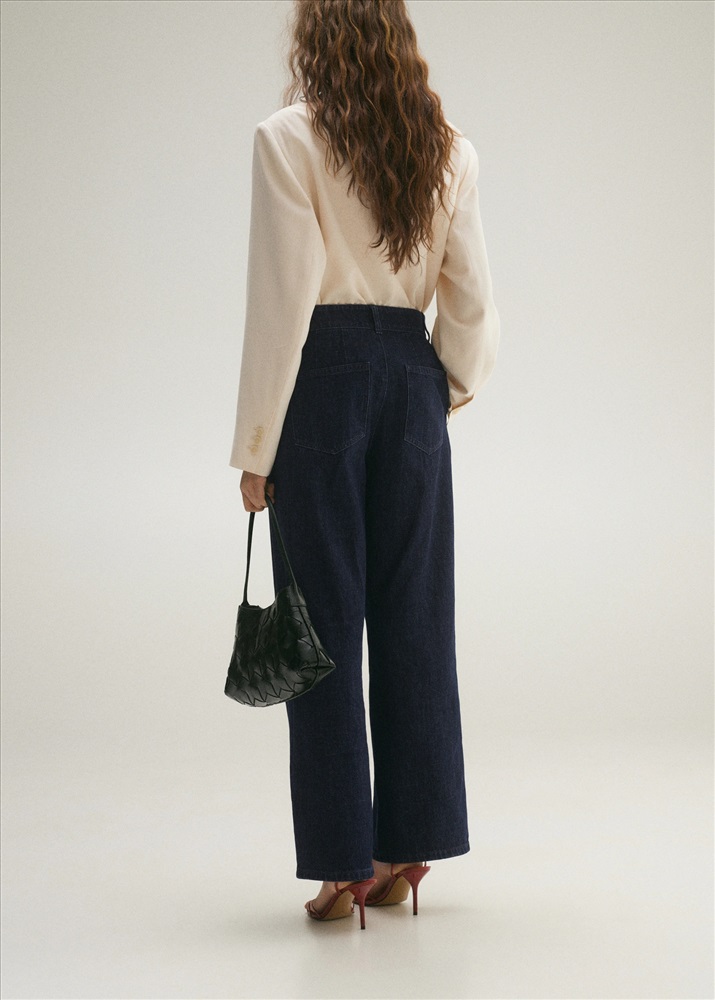 Tejido de algodón estilo tejano vaquero. Rinse wash. Diseño largo. Diseño wideleg. Tiro medio. Trabillas. Detalle de pinzas. Dos bolsillos laterales. Cierre delantero de cremallera y botón. Forro interior.