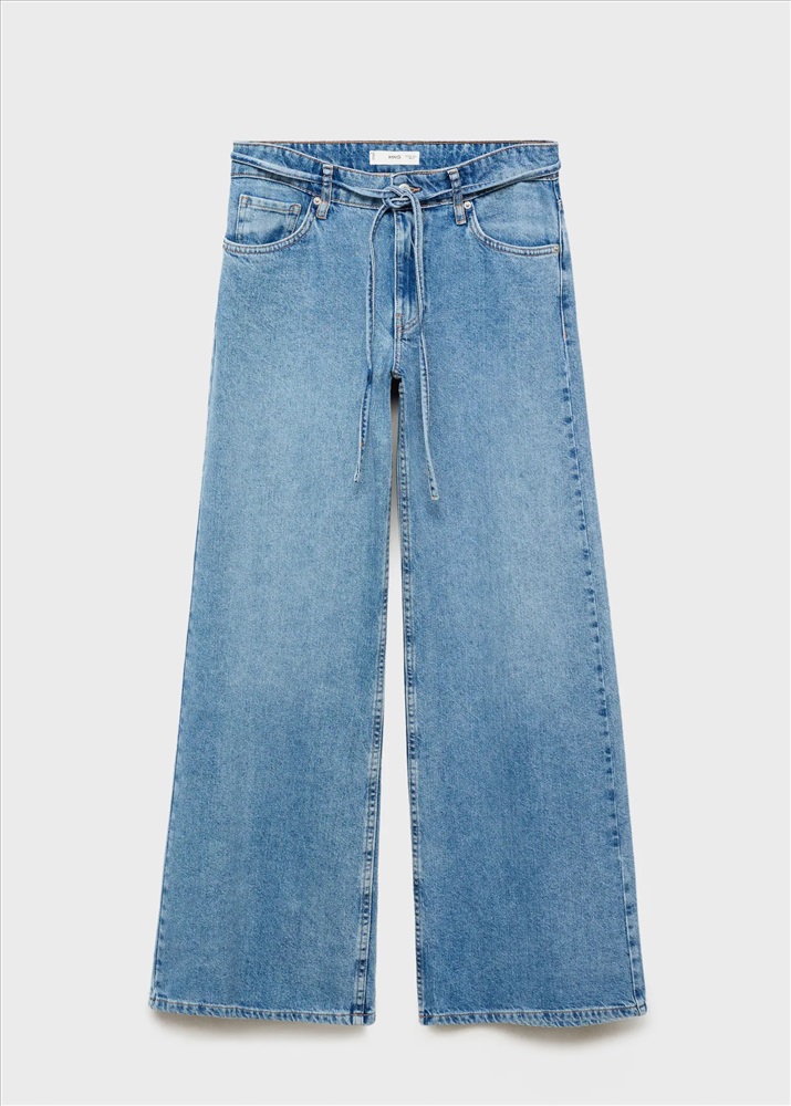 Tejido de algodón estilo tejano vaquero. Diseño largo. Diseño wideleg. Tiro bajo. Trabillas. Cinco bolsillos. Cinturón desmontable. Cierre delantero de cremallera y botón.