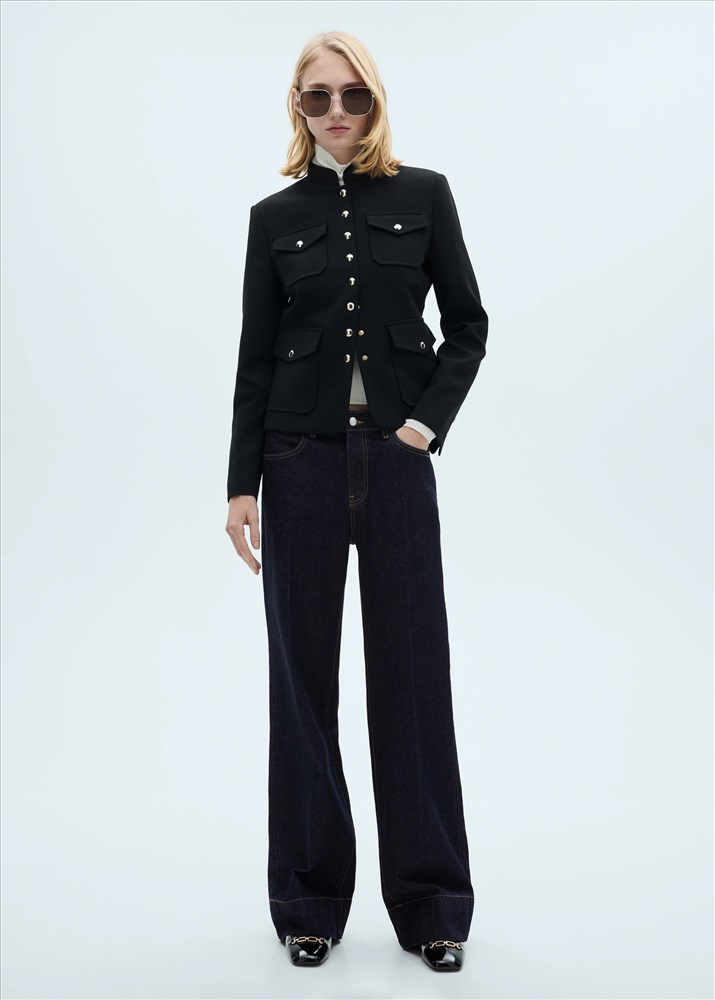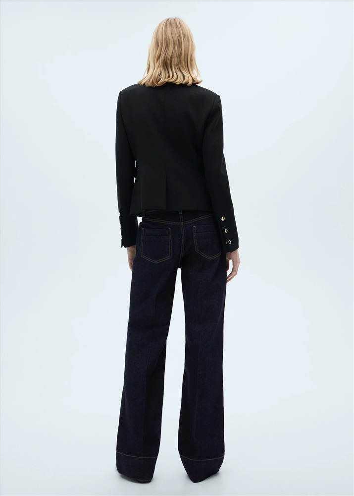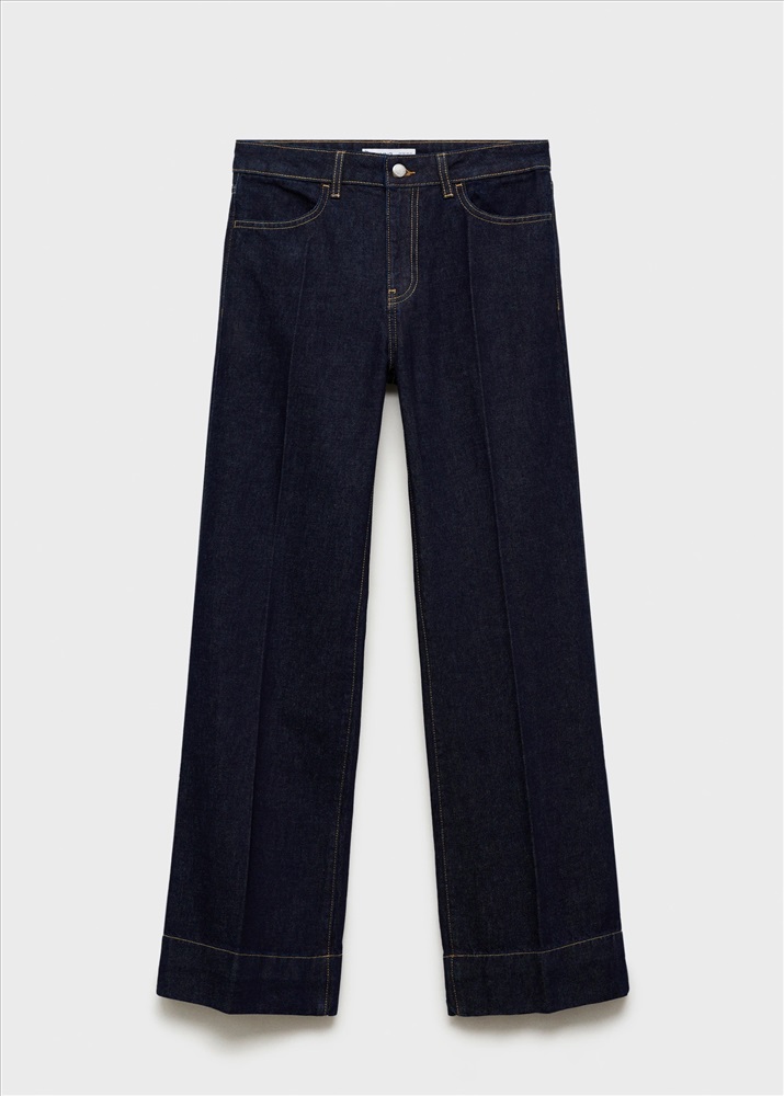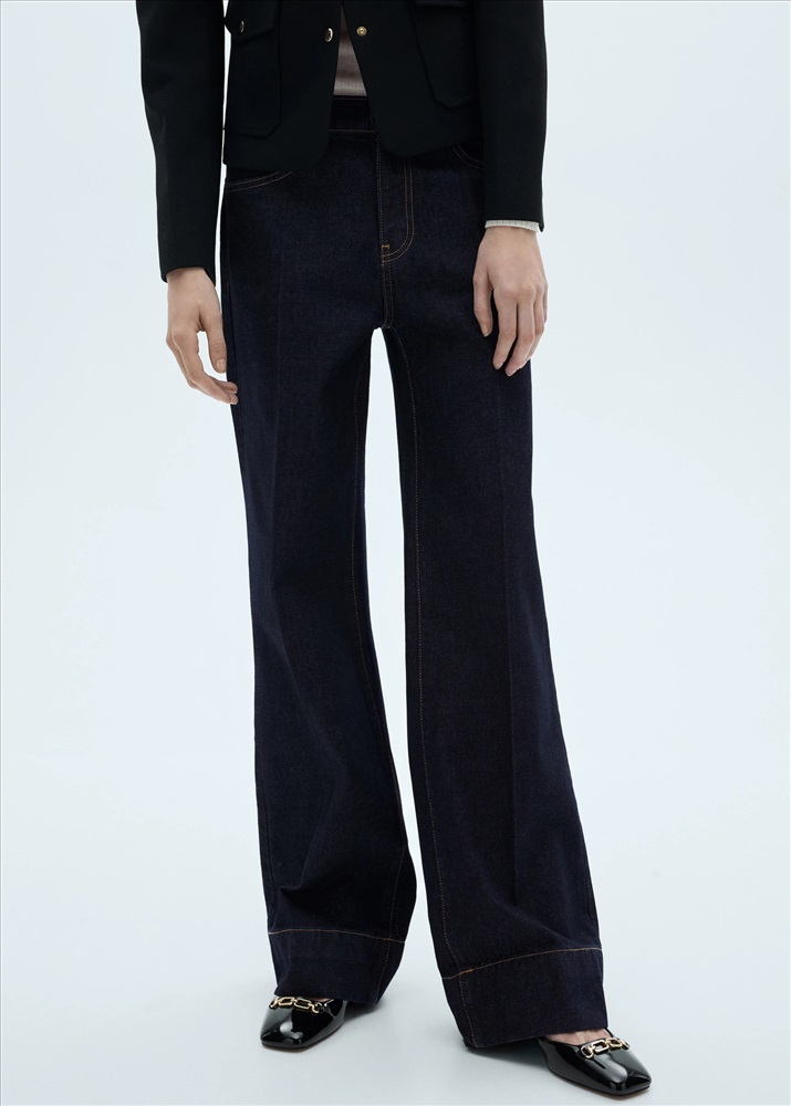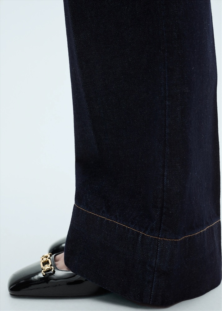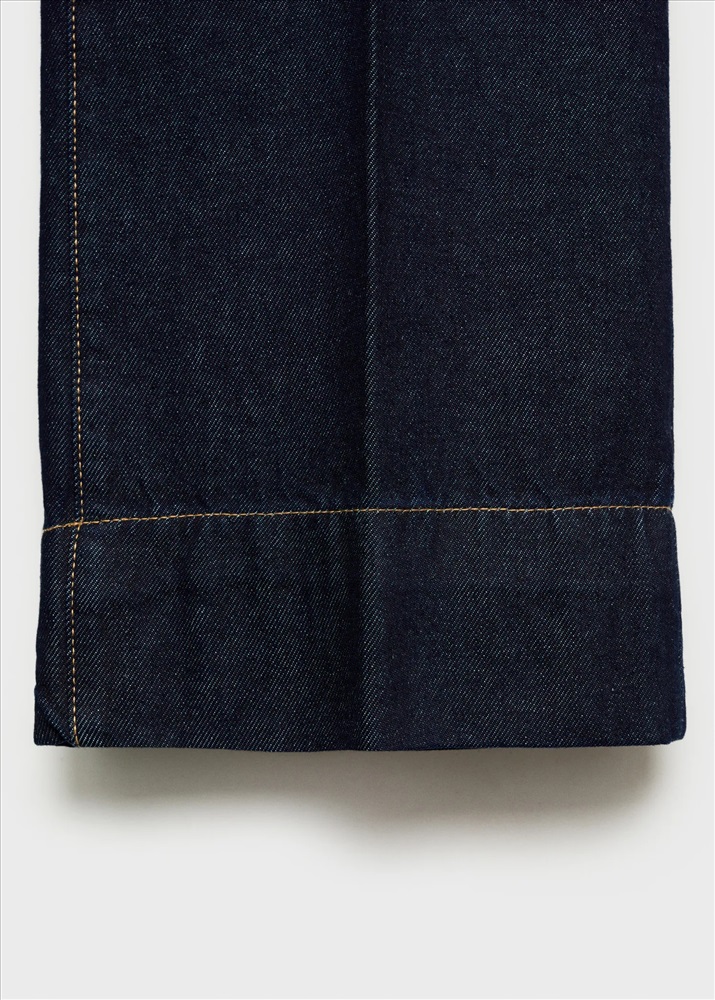 Tejido de algodón estilo tejano vaquero. Diseño wideleg. Caña ancha. Diseño largo. Tiro medio. Trabillas. Cuatro bolsillos. Cierre de cremallera y botón. Costura del bajo ancha. Largo interior 84,5 cm.