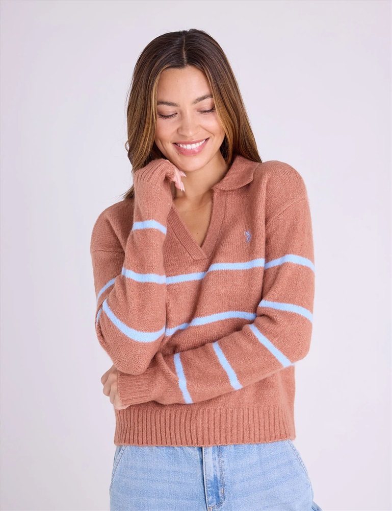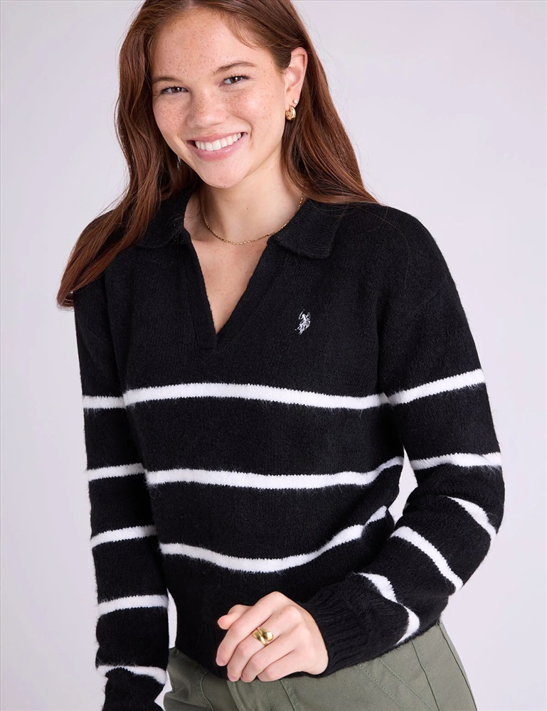 JOHNNY COLLAR THIN STRIPE SWEATER