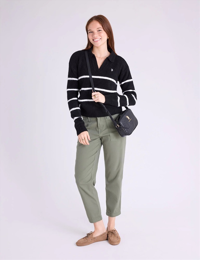 JOHNNY COLLAR THIN STRIPE SWEATER