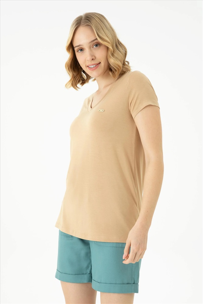 Kadın Camel Basic Tişört