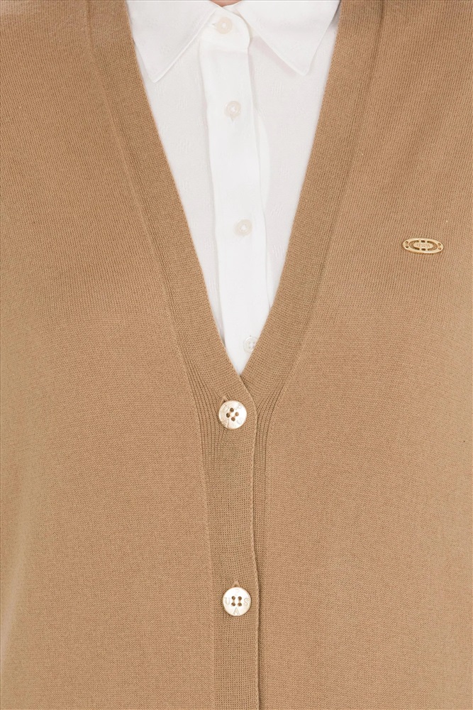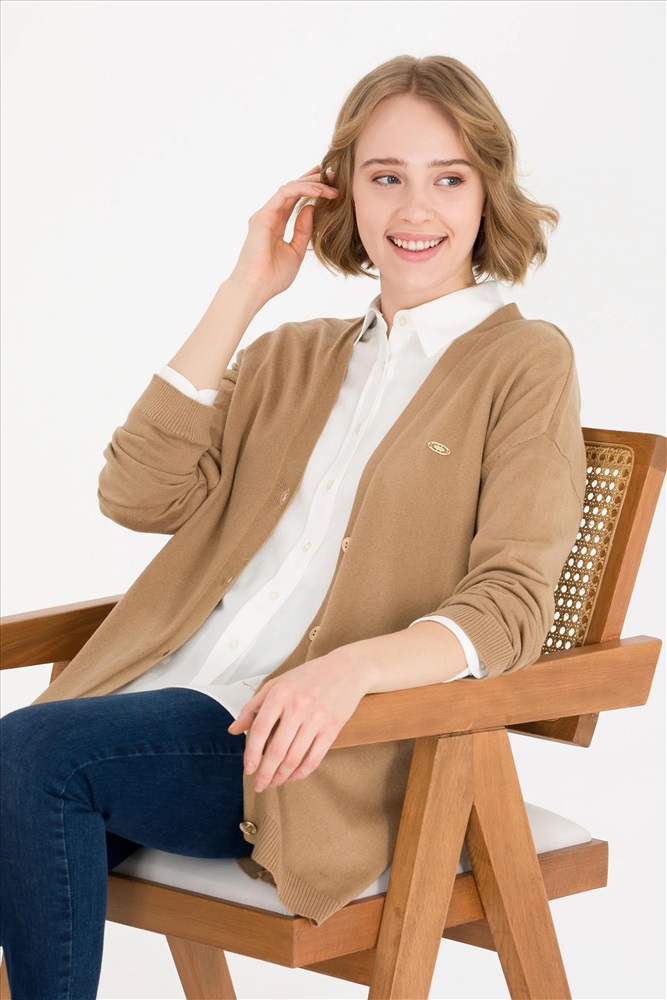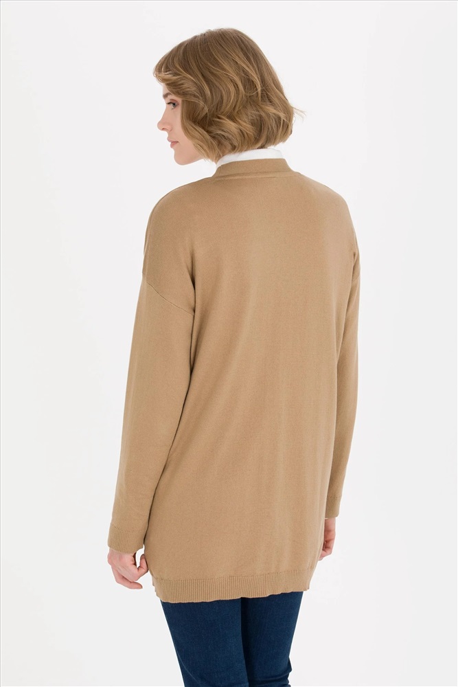 Kadın Camel Melanj Basic Triko Hırka