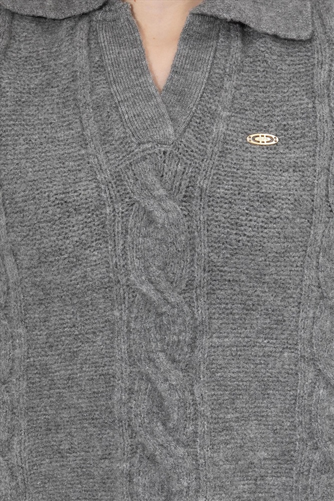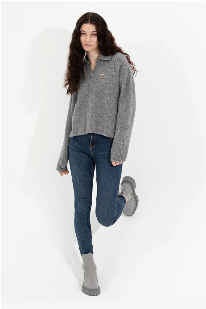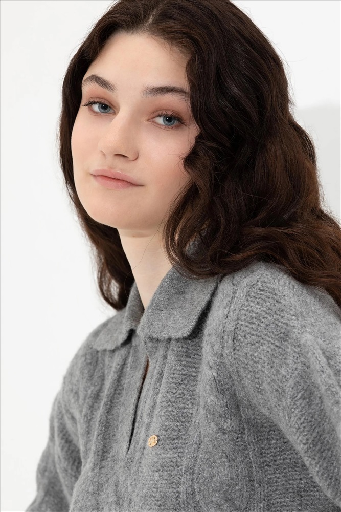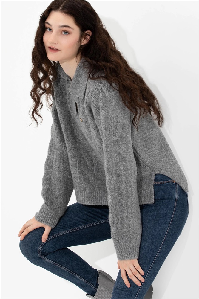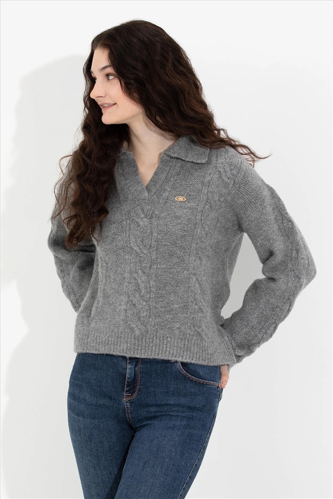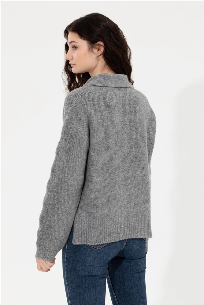 Kadın Gri Melanj V - Yaka Kazak