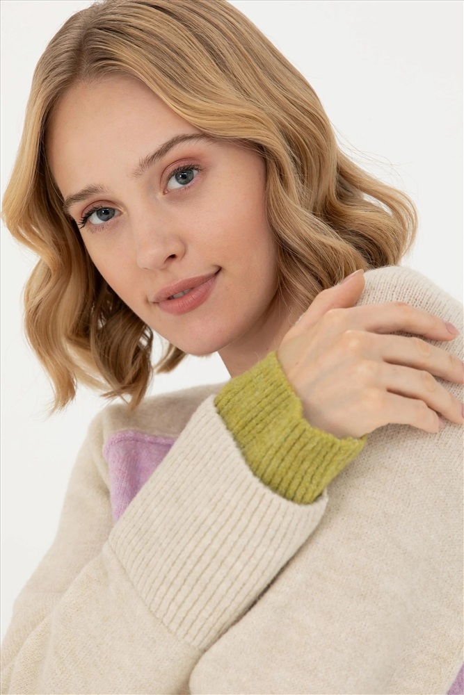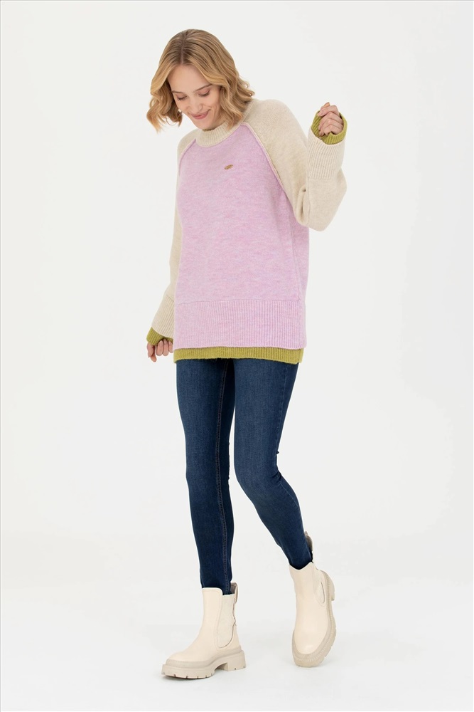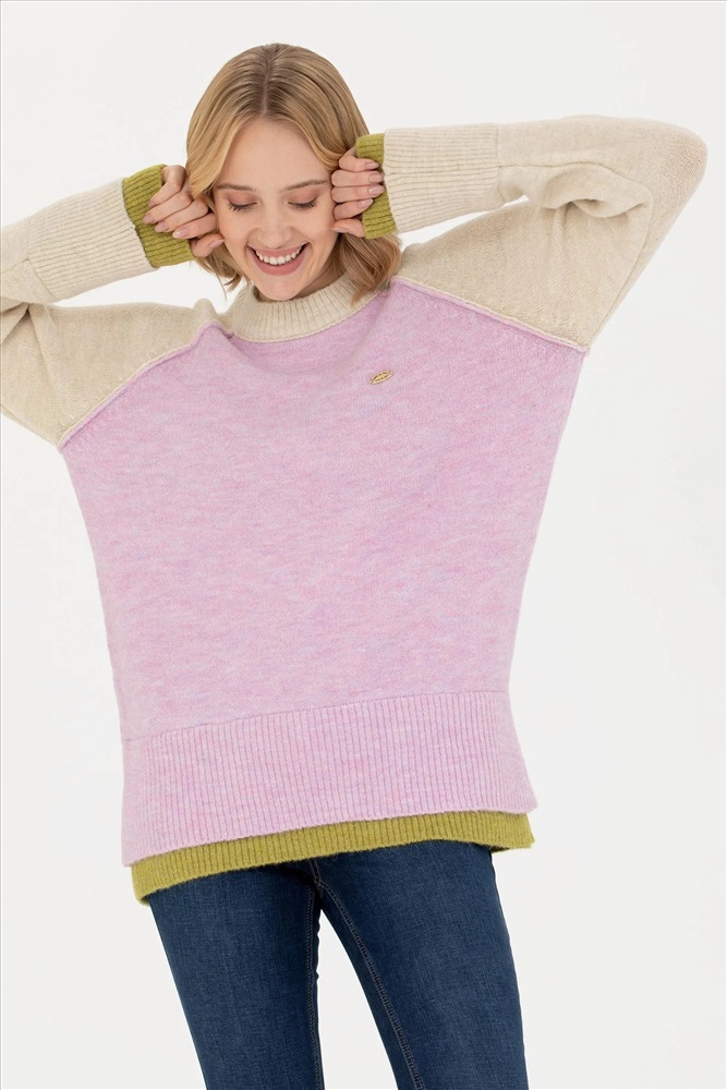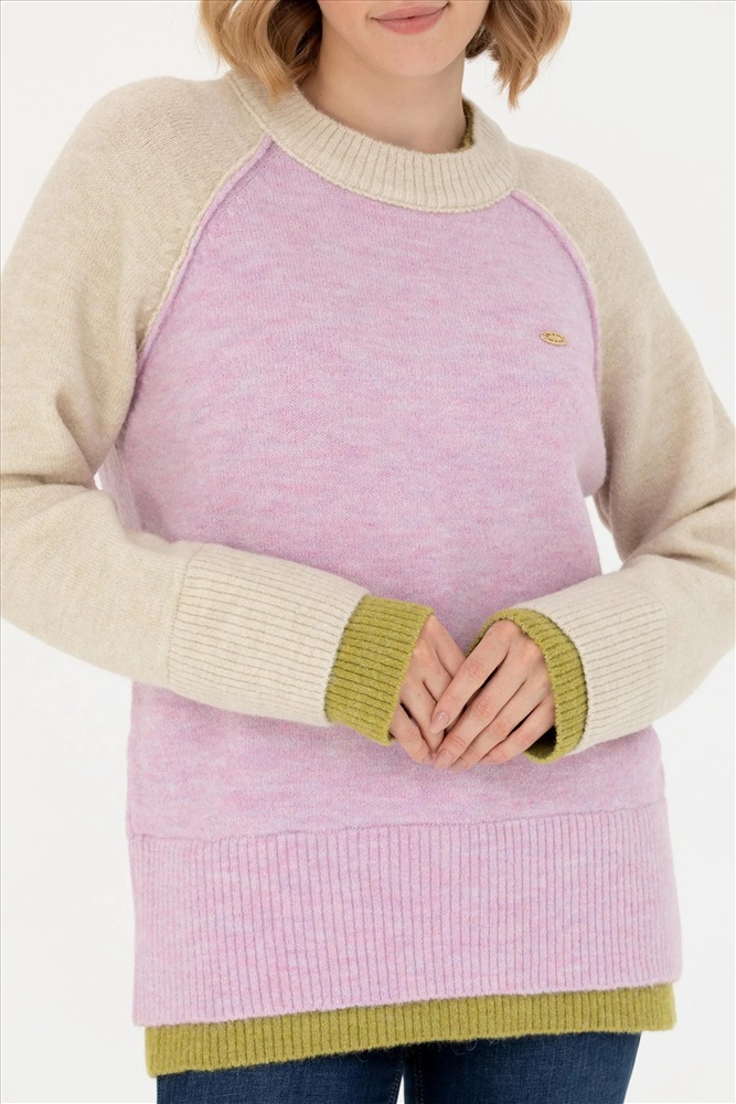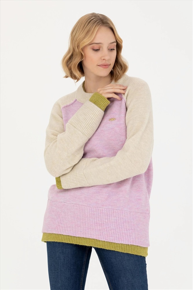 Kadın Lila Bisiklet Yaka Kazak