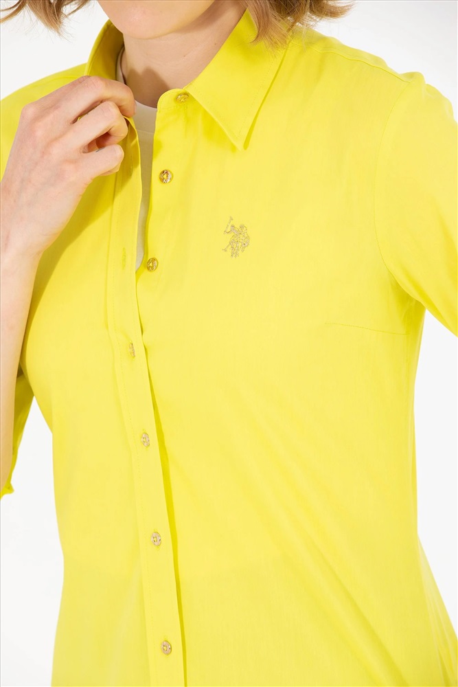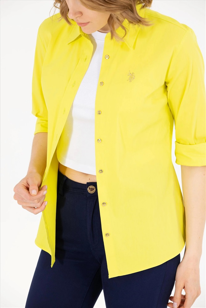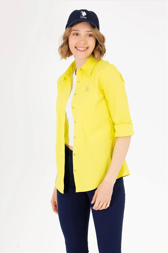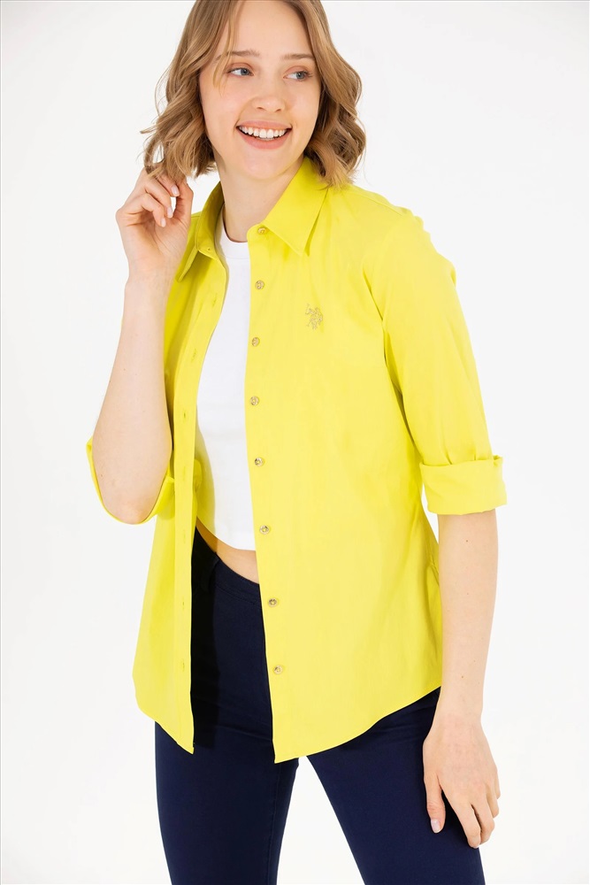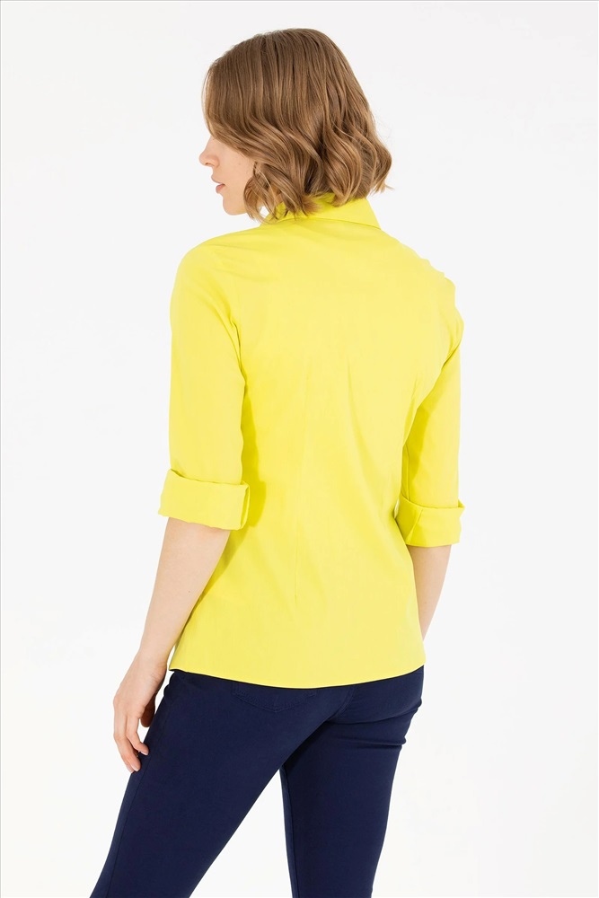 Kadın Neon Sarı Uzun Kollu Basic Gömlek