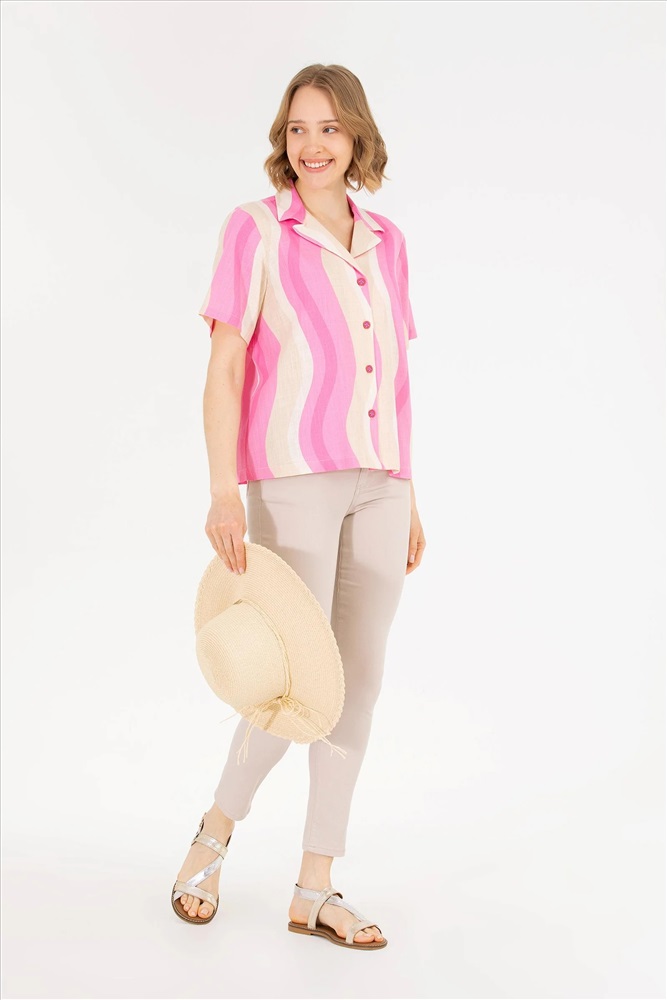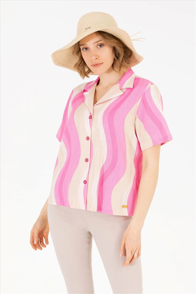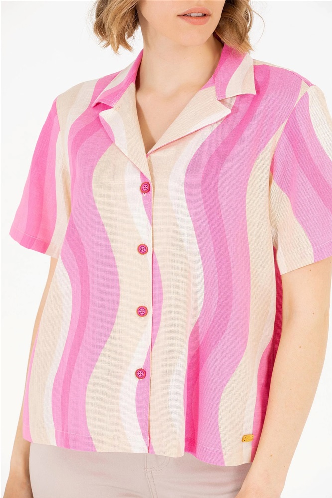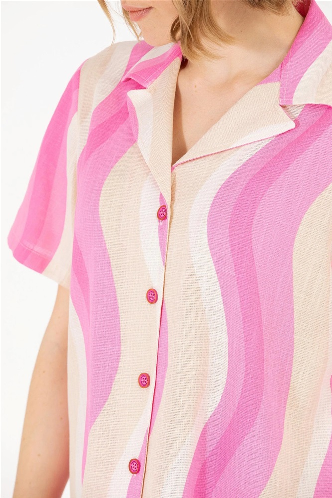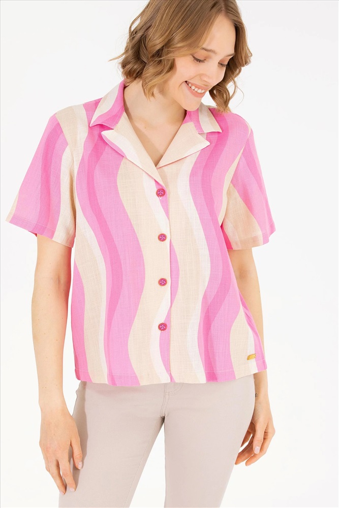 Kadın Pembe Kısa Kollu Gömlek