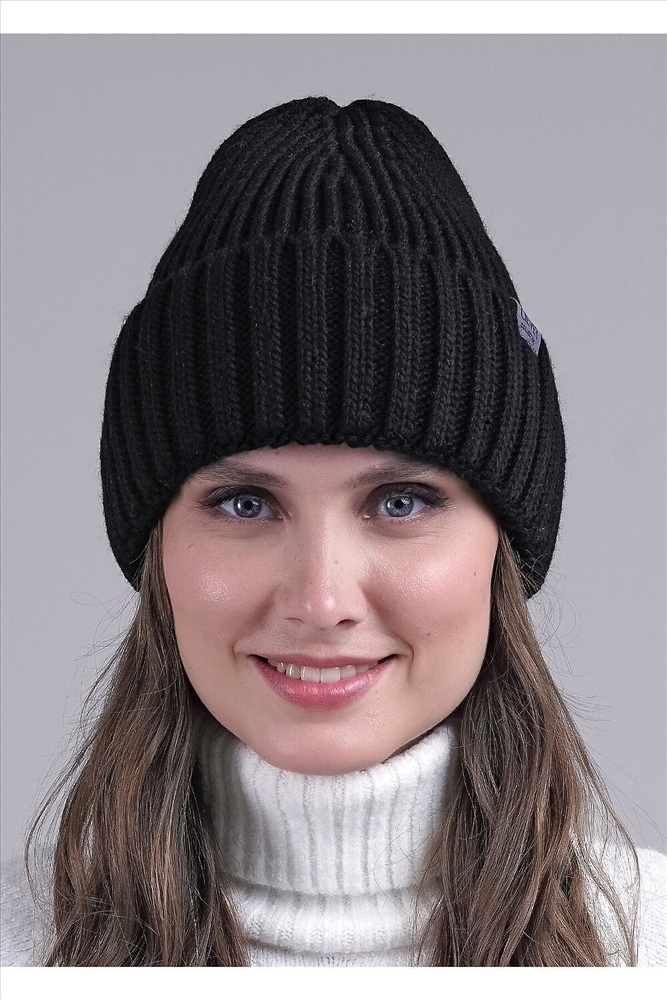 Шапка женская с отворотом, декорирована нашивкой логотип в височной зоне. Подойдёт для холодной осени- тёплой зимы.