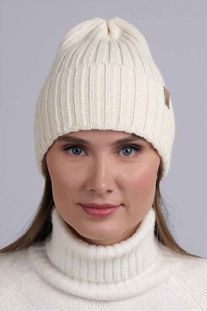 Шапка женская с отворотом, выполнена ластичным переплетением. Декорирована имиджевым логотипом. Подойдет для холодной осени- тёплой зимы.