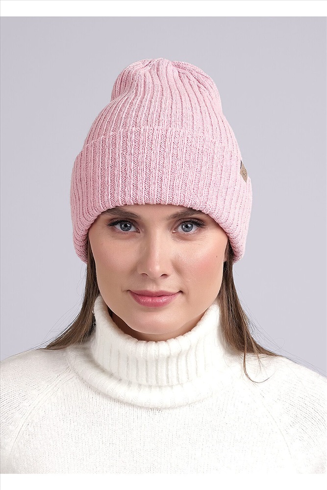Шапка женская двойная с отворотом, выполнена ластичным переплетением, декорирована стильной нашивкой логотип. Подойдёт для зимнего периода.