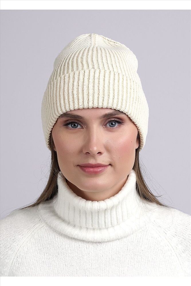 Шапка женская с отворотом, выполнена ластичным переплетением. Подойдёт для холодной осени- тёплой зимы.