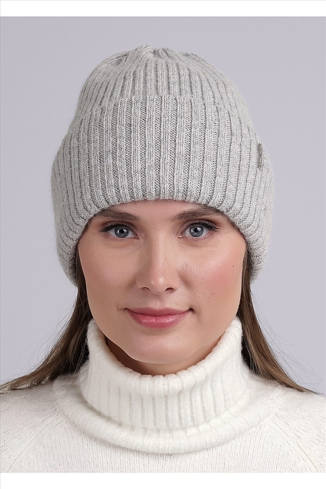 Шапка женская с отворотом, выполнена ластичным переплетением, декорирована нашивкой логотип. Утепление по всей голове флисом. Идеально подойдёт для холодной зимы.
