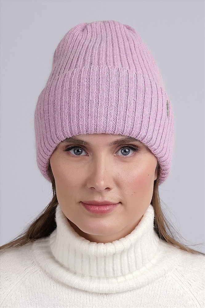 Шапка женская с отворотом, выполнена ластичным переплетением, декорирована нашивкой логотип. Утепление по всей голове флисом. Идеально подойдёт для холодной зимы.