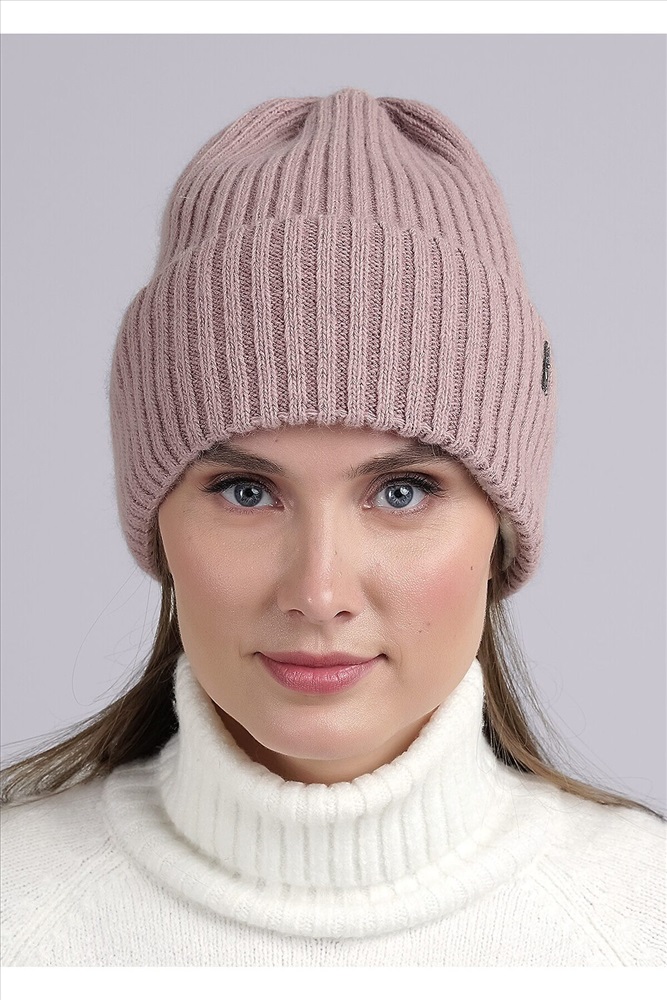 Шапка женская с отворотом, выполнена ластичным переплетением, декорирована нашивкой логотип. Утепление по всей голове флисом. Идеально подойдёт для холодной зимы.