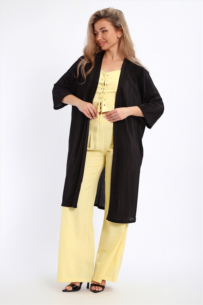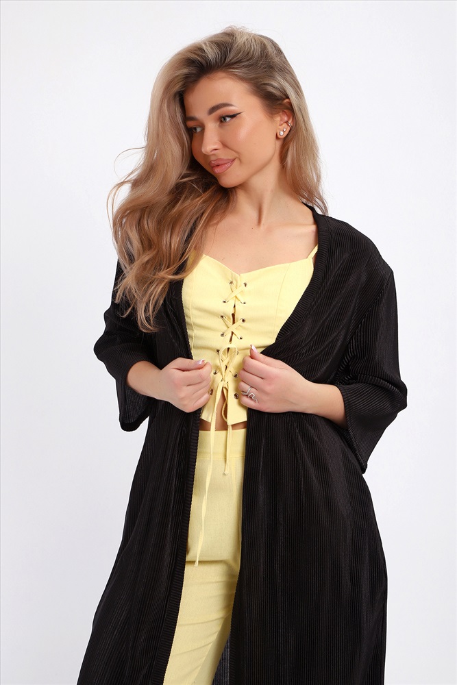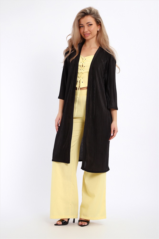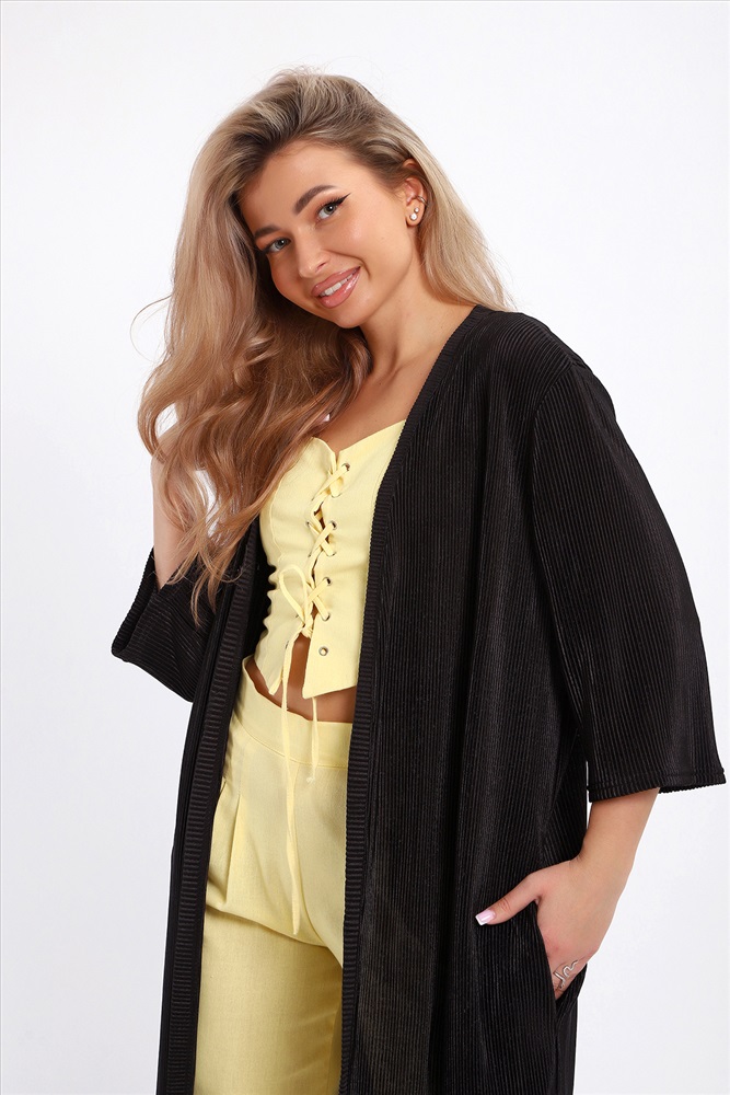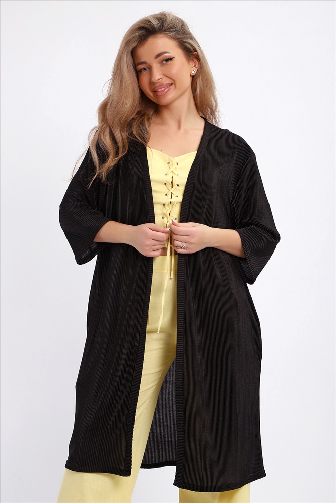 Застежка: без застежки Создайте свой неповторимый образ с помощью элегантного кардигана длиной макси, который станет идеальным дополнением любого гардероба. Изготовленный из легкого струящегося материала атлас гофре, этот предмет одежды обеспечивает комфорт и легкость на протяжении всего дня. Стильная накидка без застежки позволяет легко комбинировать ее с различными нарядами, создавая при этом модный изысканный образ. Базовые расцветки кардигана без труда впишутся в ваш гардероб. Рукав длиной 3/4 подойдет дамам любого роста. Внутренний карман в боковом шве добавляет удобство и функциональность изделию. Длинный силуэт визуально вытягивает фигуру и добавляет женственности вашему образу.