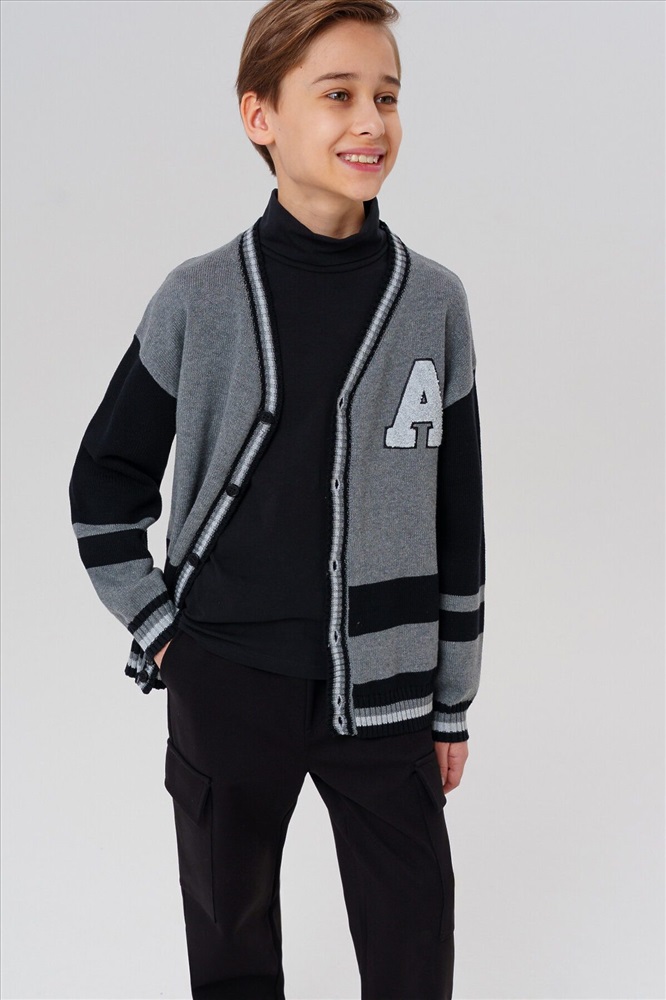 Отличный вариант для повседневной носки и школьных будней. Качественные материалы и продуманный крой делают этот кардиган практичным выбором для мальчика-школьника.