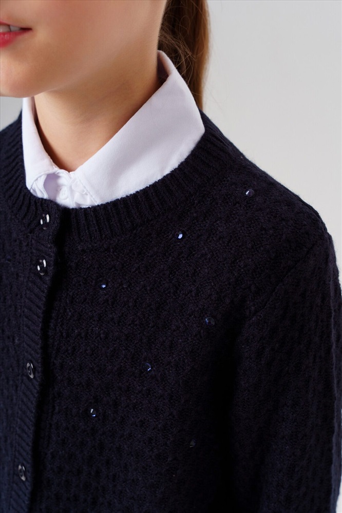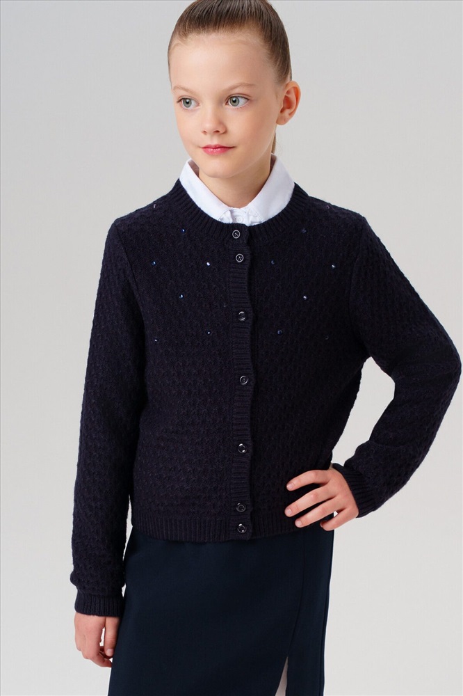 ID товара: 1130978 Состав: 100% Акрил Сезон: Демисезон Длина: Средняя Фасон: Полуприлегающий Рукав: Длинные Вид застежки: Пуговицы Вырез горловины: Округлый Основная ткань: Акрил Стиль: классический Страна бренда: Германия Страна производства: Китай Стильный школьный темно-синий кардиган на пуговицах для девочки-подростка. Этот модный кардиган для школы станет универсальным элементом гардероба юной модницы. Модель выполнена в базовом силуэте – классический крой обеспечивает комфорт в движении и современный внешний вид. Ключевые особенности: + Застежка на пуговицы + Декор из страз Почему стоит выбрать: Идеально подходит для школы – сочетает удобство и аккуратный внешний вид Удобный классический крой не сковывает движения Стильный дизайн понравится подросткам, следящим за модой Отличный вариант для повседневной носки и школьных будней. Качественные материалы и продуманный крой делают этот кардиган практичным выбором для девочки-школьницы. Комментарии к товару