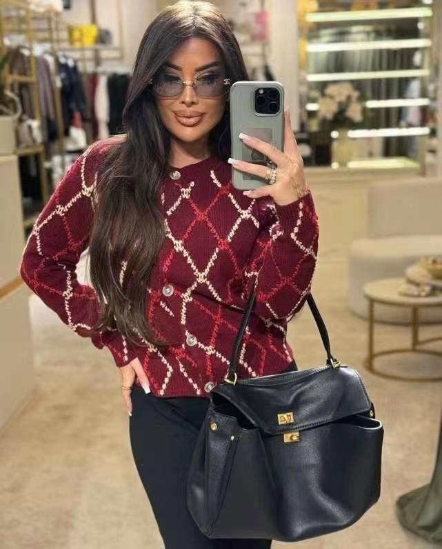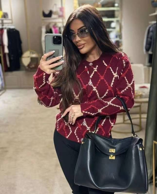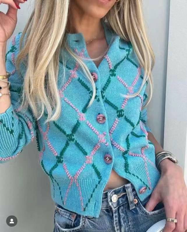Miumi* новый стиль вязаный кардиган из 100% шерсти с круглым вырезом и длинными рукавами с буквами логотипа на груди, красный, желтый, фиолетовый, розовый, зеленый, синий, кофейный, SML, [размер M ширина плеч 37, обхват груди 98, длина рукава 60, длина одежды 54]
