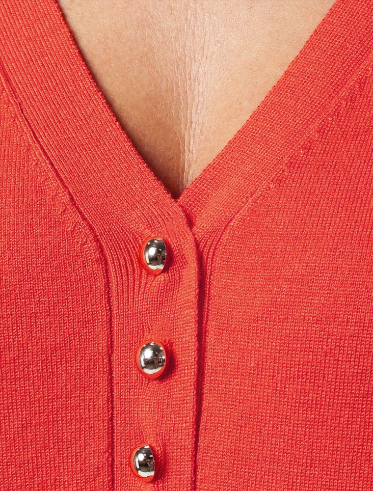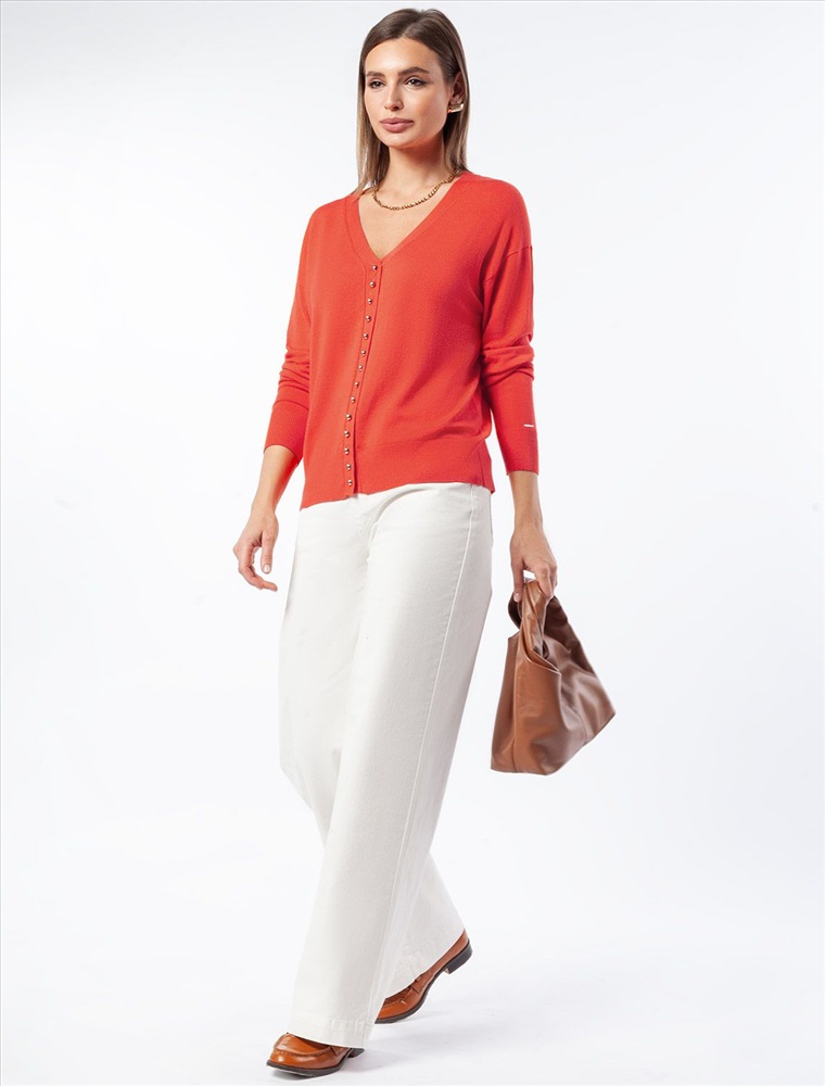 Плотность: 314 GG Кардиган тонкой вязки выполнен из нежной пряжи вискозы с нейлоном. Лаконичный силуэт дополнен яркой фишкой изделия - ряд золотистых пуговиц, визуально вытягивающий силуэт. Очень приятное к телу изделие, в котором будет не жарко даже в самые теплые дни. Изделие дополнено логотипом бренда. Комментарии к товару