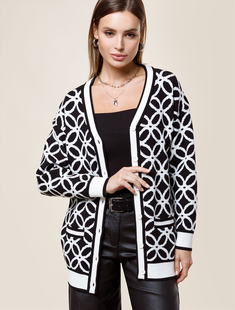 Кардиган жаккардовой вязки выполнен из нежной пряжи на основе вискозы с добавлением кашемира. Мягкая модель не раздражает кожу, приятно ощущается на теле и поддерживает комфортный микроклимат. Совет стилиста: модель гармонично впишется в любой гардероб, добавив образу выразительности. Сочетайте с однотонными брюками, юбкой, платьем или джинсами
