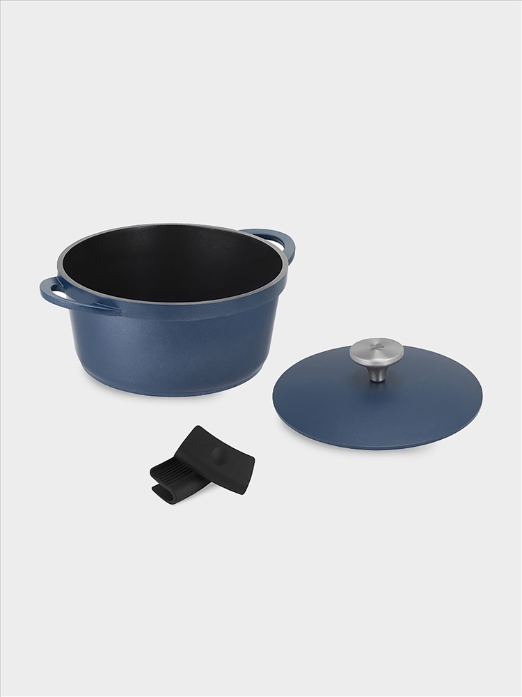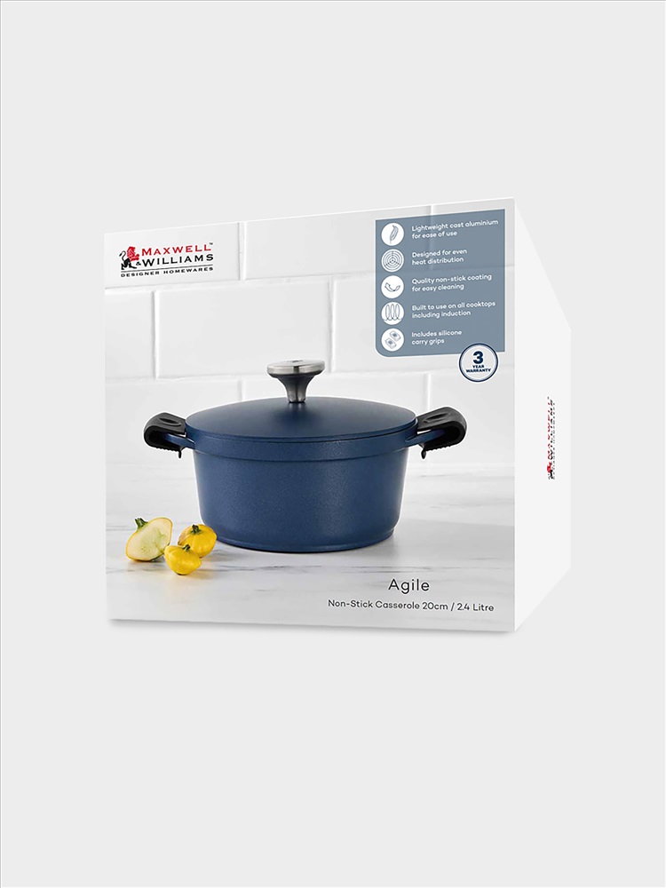 Кастрюля, 20 см, 2,4 л, с крышкой, с покрытием, алюминий, синяя, Agile. Материал: алюминий (литой) с антипригарным покрытием. Можно мыть в посудомоечной машине.