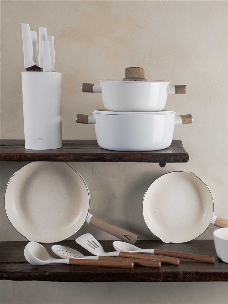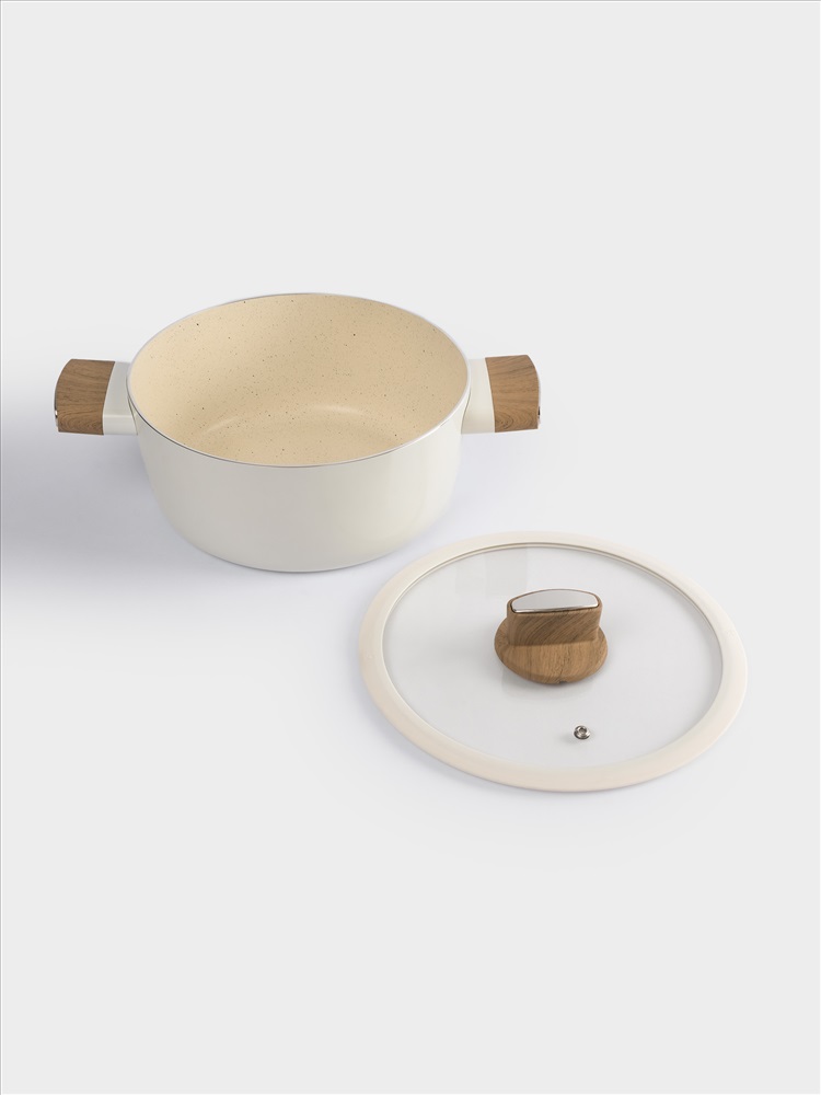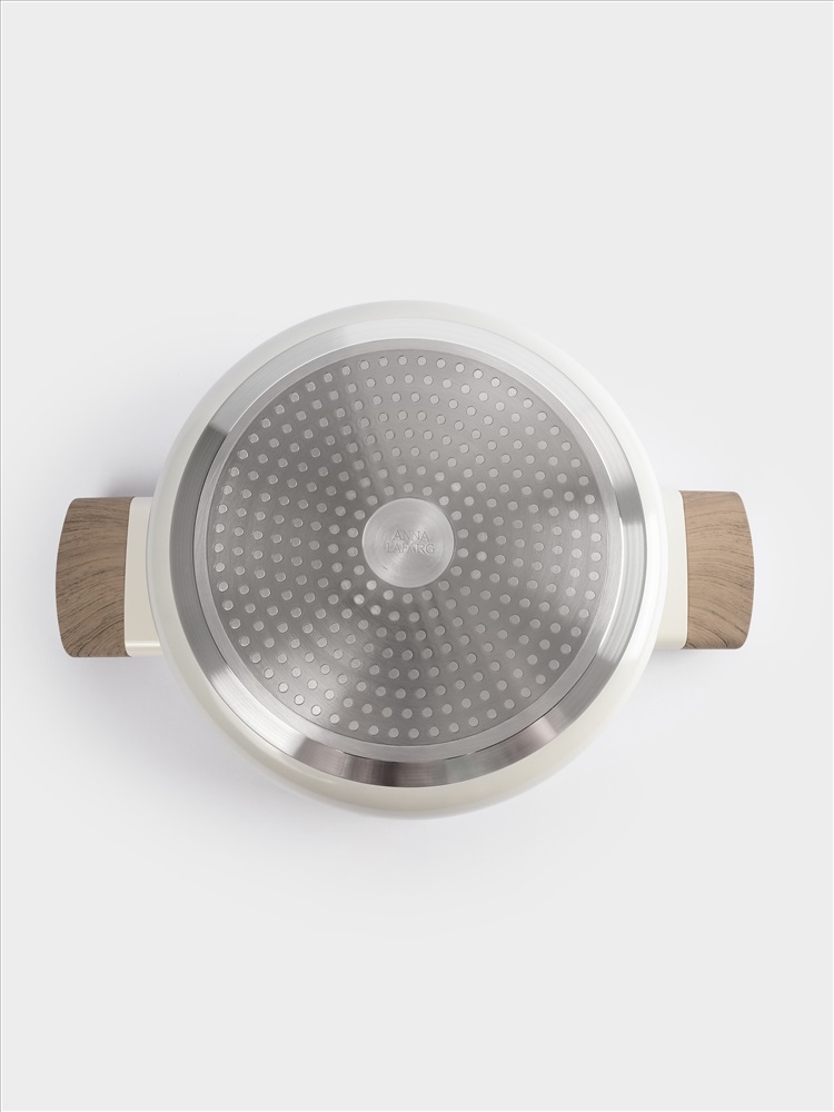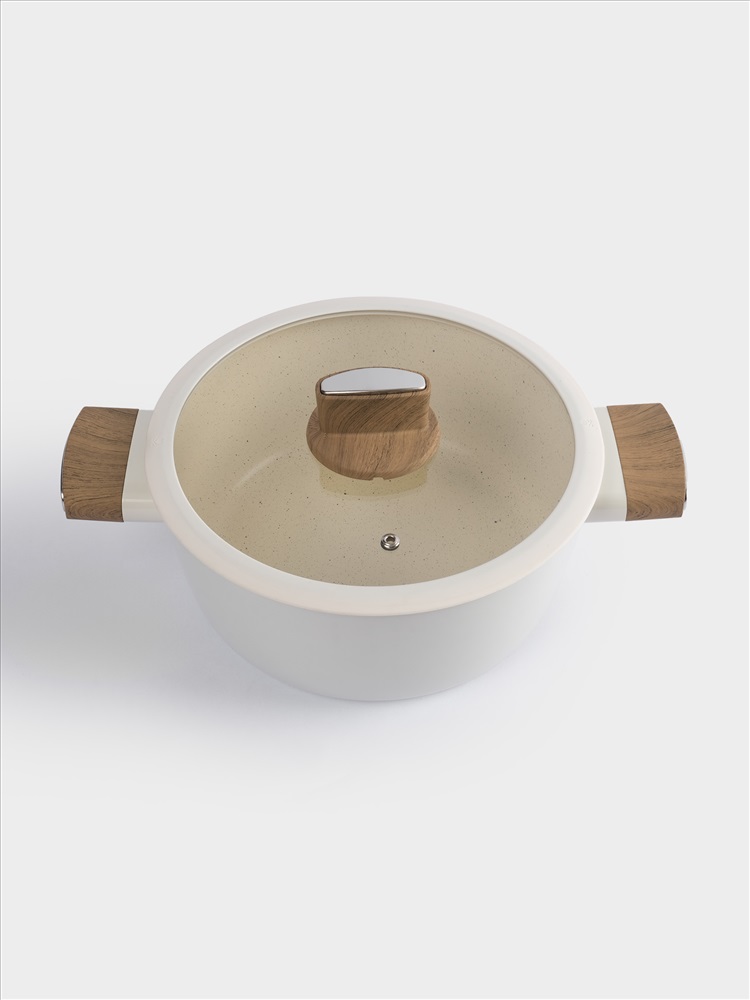 Штрихкод: 2000000005027 Сезон: ВСЕСЕЗОННЫЙ Коллекция: УЮТНАЯ КУХНЯ Страна бренда: Китай Кастрюля с крышкой. Размер: 24 см. Объем: 4,1 литра. Материал: прессованный алюминий с двухслойным антипригарным мраморным покрытием Pfluon, крышка - термостойкое стекло с силиконовым ободком, ручка - бакелит, нержавеющая сталь. Двухслойное антипригарное покрытие Pfluon marble безопасно для здоровья, т.к. не содержит PFOA (перфтороктановая и перфлюорооктановая кислоты); имеет гладкую поверхность, которая позволяет готовить с минимальным количеством масла и выдерживает нагрев до 260ºС; обладает высокой теплопроводностью, износостойкостью и устойчивостью к царапинам. Подходит для всех типов плит, в том числе индукционных. Пустую посуду не подвергать воздействию высоких температур. Рекомендации по уходу: мыть вручную с применением мягких моющих средств. Не использовать для ухода абразивные чистящие средства и жесткие губки. Можно мыть в посудомоечной машине, но это приводит к появлению темного налета на внешней алюминиевой части дна. Комментарии к товару