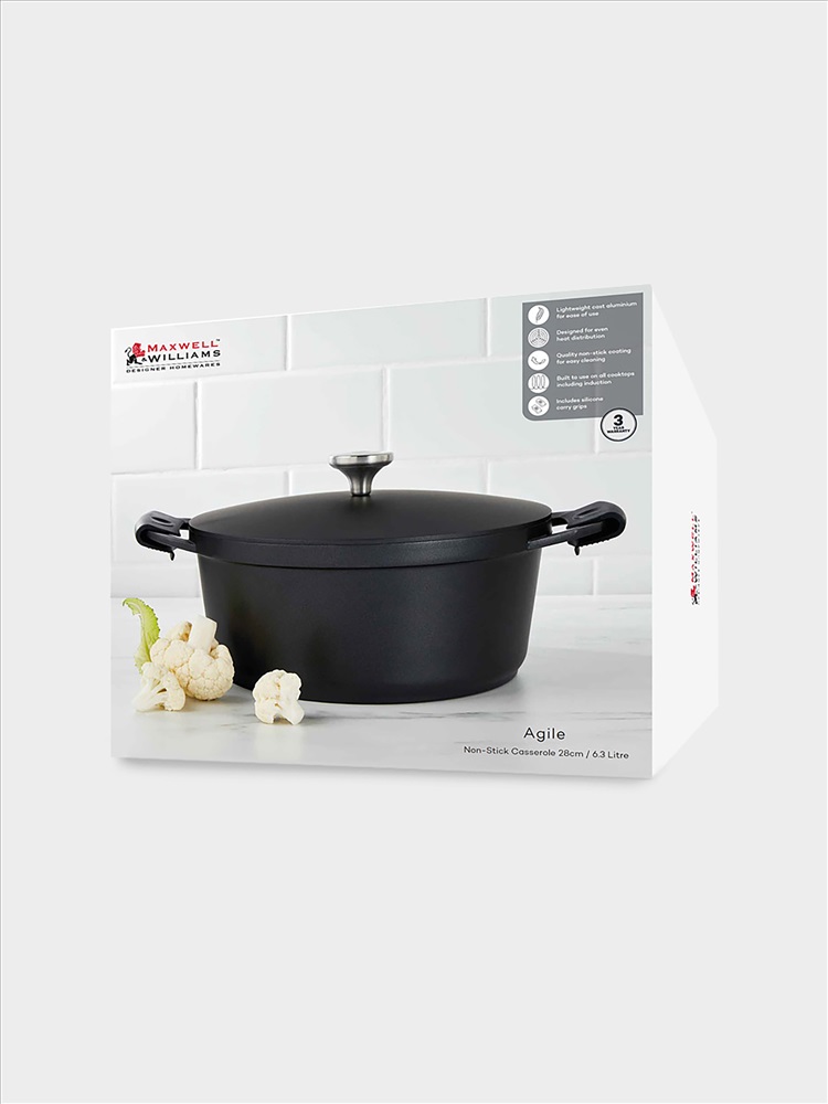 Коллекция: БАЗОВАЯ Кастрюля, 28 см, 6,3 л, с крышкой, с покрытием, алюминий, черная, Agile. Материал: алюминий (литой) с антипригарным покрытием. Можно мыть в посудомоечной машине.