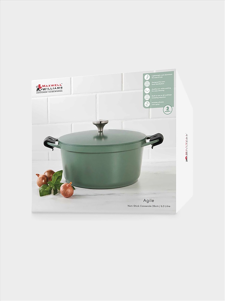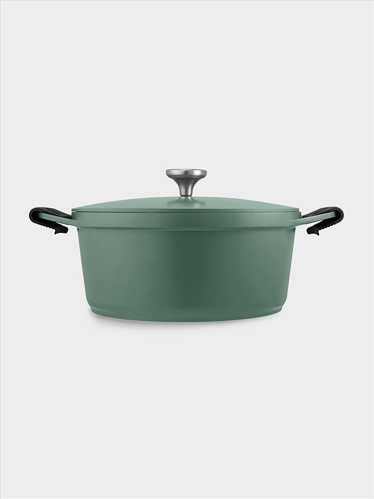 Кастрюля, 28 см, 6,3 л, с крышкой, с покрытием, алюминий, зеленая, Agile. Материал: алюминий (литой) с антипригарным покрытием. Можно мыть в посудомоечной машине.