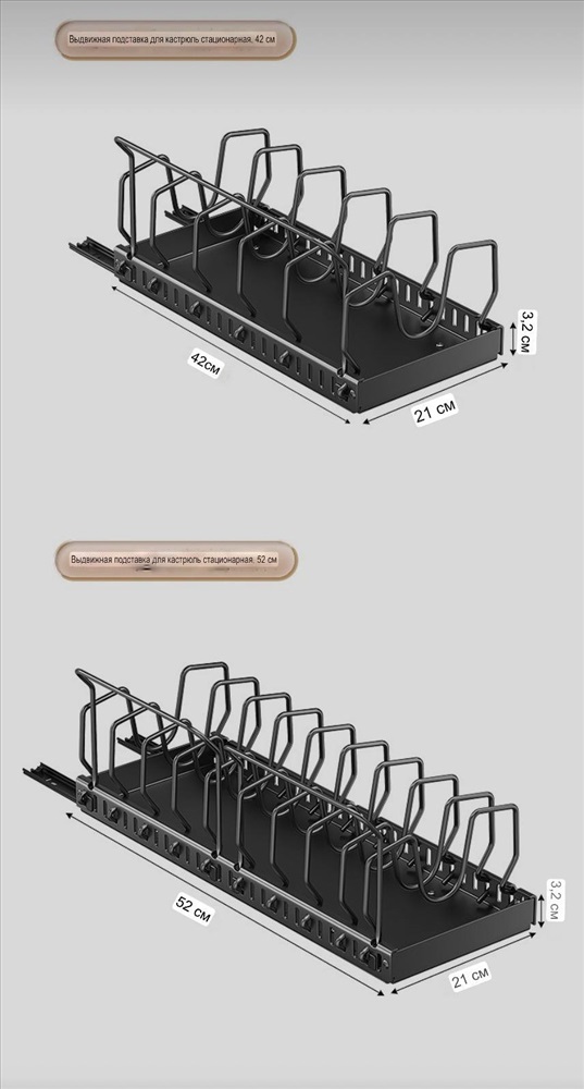 Полностью из металла Размер: глубина 42-52 см; ширина 21 см Есть комплектация базовая и с дополнительными подставками сбоку Комментарии к товару