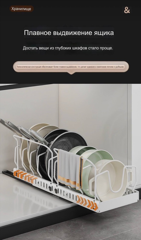 Выдвижной. Легко доставать, отличная организация, никакого бардака, регулируемая ширина ячеек + регулируемая длина самого органайзера.