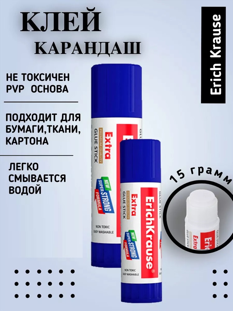 Стиль: для школы Клей карандаш от всеми известной и любимой марки - Erich Krause c новой суперсильной формулой на PVP основе. Клей-карандаш на новой основе обладает экономичным расходом, максимально быстрым и надежным склеиванием. Школьные канцелярские принадлежности Erich Krause отлично выполняют свое предназначение, в том числе клей карандаш канцелярский. Клей для бумаги, картона, фотографий, ткани и других поверхностей быстро и надежно склеивает необходимый материал. Клей-карандаш для школы и офиса не будет виден даже через долгое время, не пожелтеет и не потрескается. Оптимальный объем - 15 г, и не маленький, и не большой, удобно хранить в школьном пенале или настольном органайзере. Идеален для творческих, учебных и для офисных нужд. Клей канцелярский прозрачный не токсичен и не содержит растворителя. Клей канцелярский легко смывается водой и морозостоек.