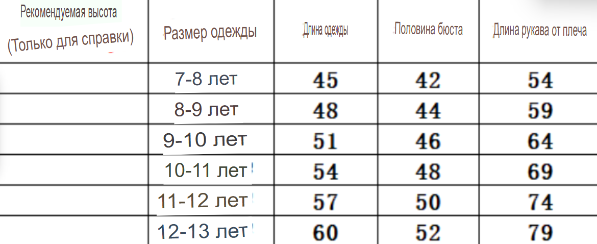 Размер: 8-9 лет, 9-10 лет, 10-11 лет, 11-12 лет, 12-13 лет