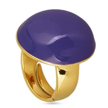 Изготовлено из ювелирного сплава на основе латуни с гальваническим покрытием золотом. Изделие украшает эмаль фиолетового цвета. Диаметр 2см.
