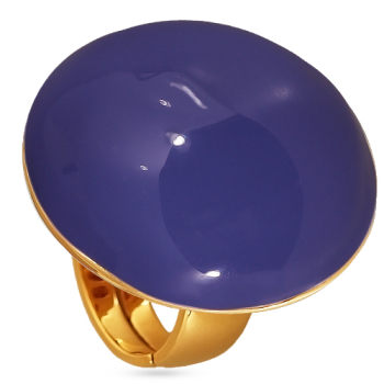 Изготовлено из ювелирного сплава на основе латуни с гальваническим покрытием золотом. Изделие украшает эмаль фиолетового цвета. Диаметр 3см.
