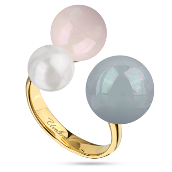 Изготовлено из ювелирного сплава на основе латуни с гальваническим покрытием золотом. Изделие украшает майорский круглый жемчуг белого, розового и голубого цвета диаметром 8, 10 и 12мм. Безразмерное.