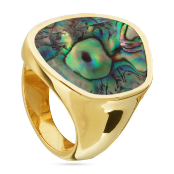 Изготовлено из ювелирного сплава на основе латуни с гальваническим покрытием золотом. Изделие украшает гелиотис. Ширина кольца 2.5см.