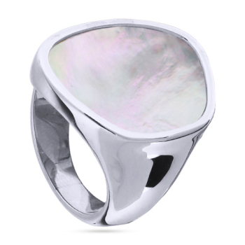 Изготовлено из ювелирного сплава на основе латуни с гальваническим покрытием родием. Изделие украшает перламутр. Ширина кольца 2.5см.