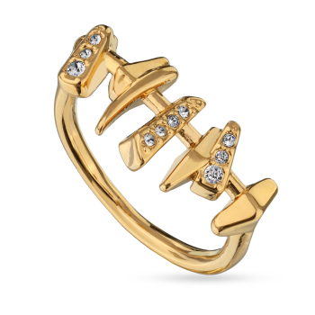 Изготовлено из ювелирного сплава на основе латуни с гальваническим покрытием золотом. Изделие украшают кристаллы SW белого цвета. Ширина кольца 9мм.